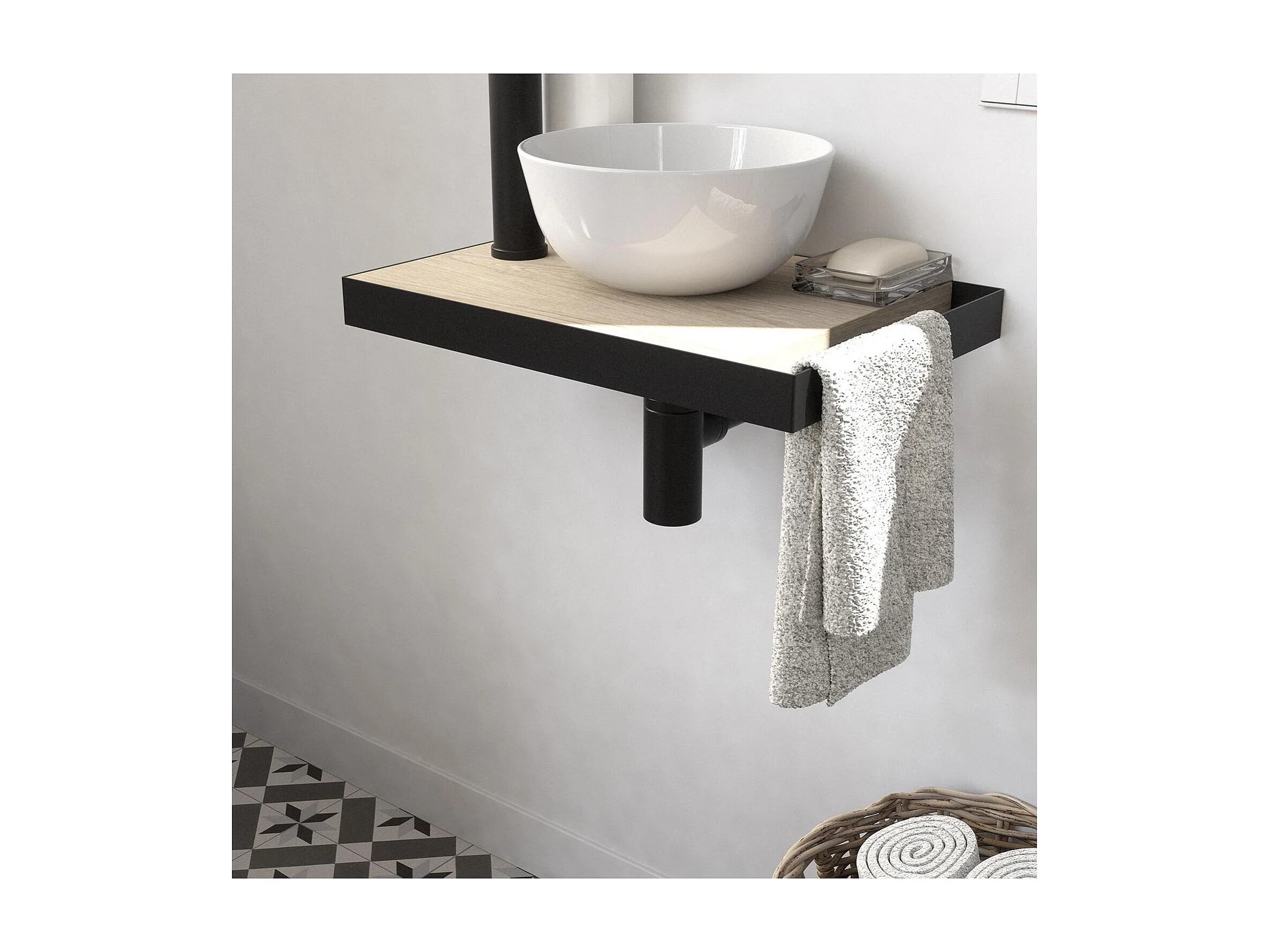 Lavatório fino SOHO + pia + torneira + espelho