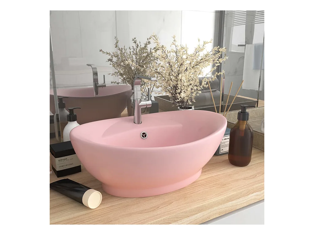 Lavatório luxuoso oval 58,5x39 cm cerâmica rosa mate PT919496