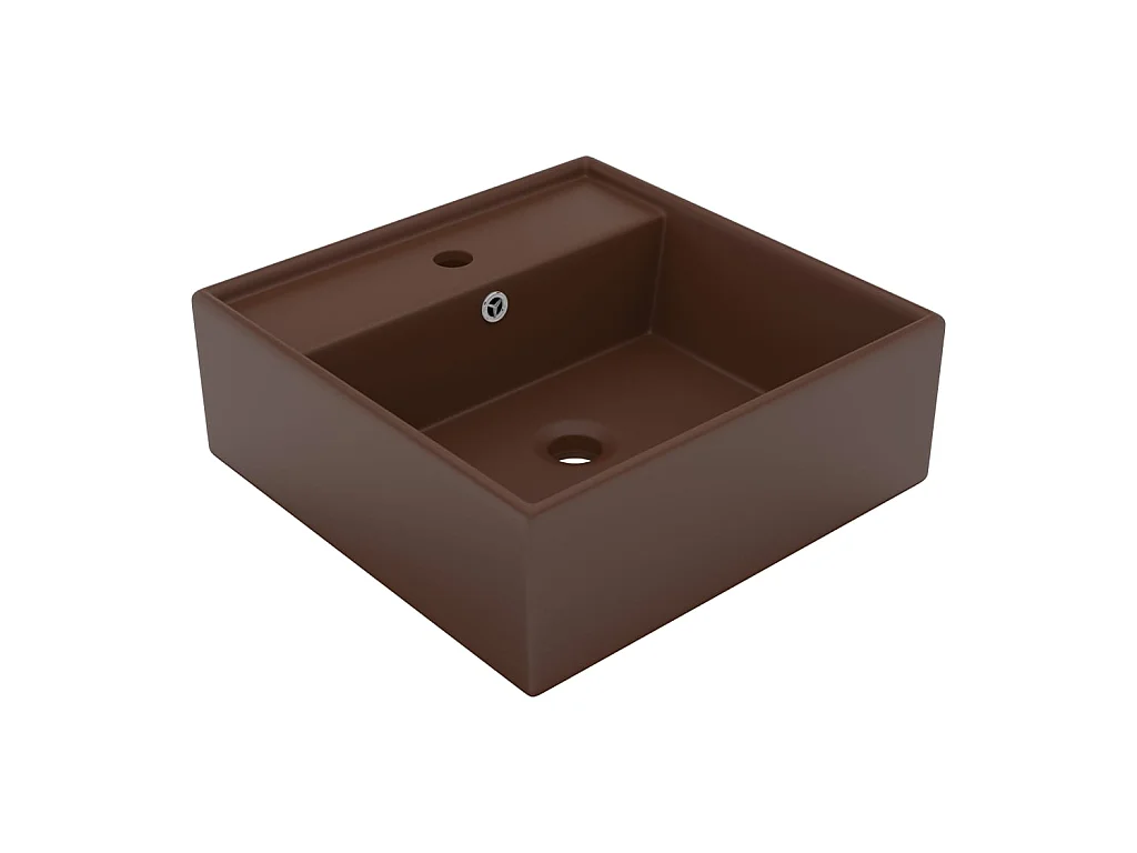 Lavatório luxuoso quadrado 41x41 cm cerâmica castanho mate PT235478