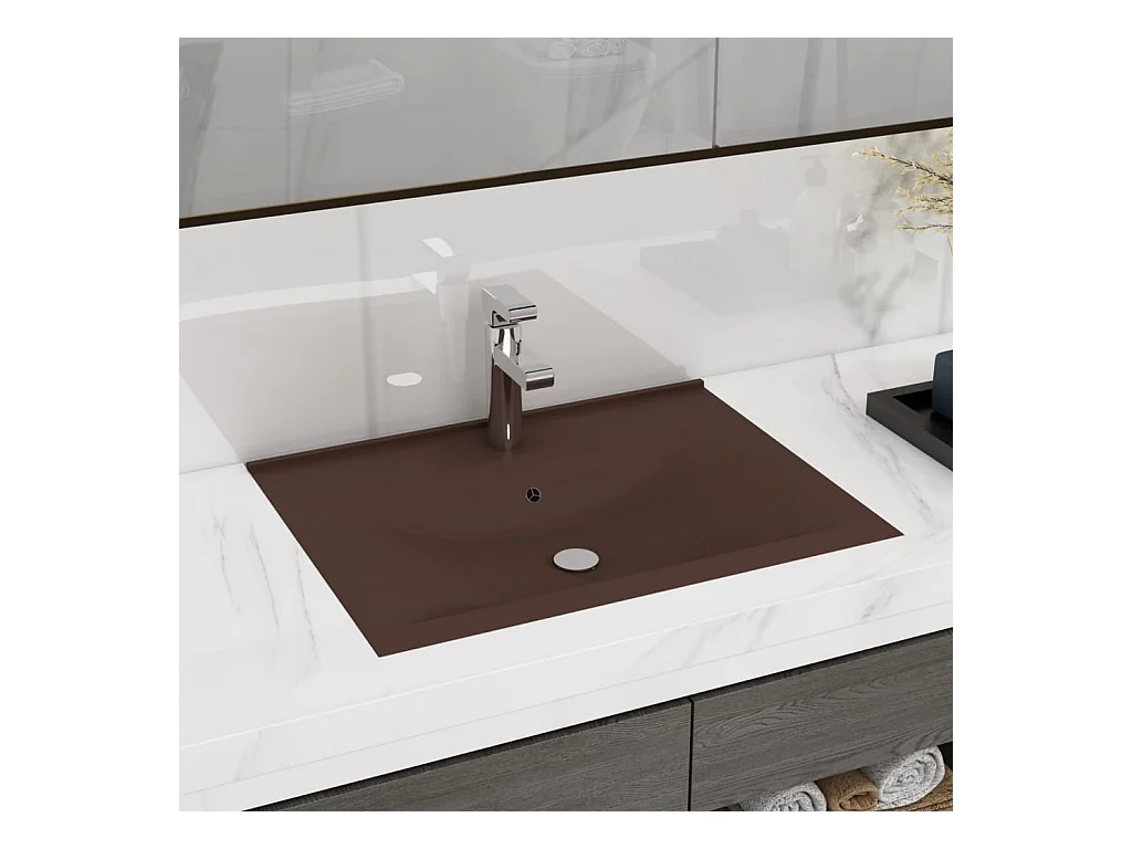 Lavatório orif. torneira 60x46 cm cerâmica castanho-escuro mate PT263779