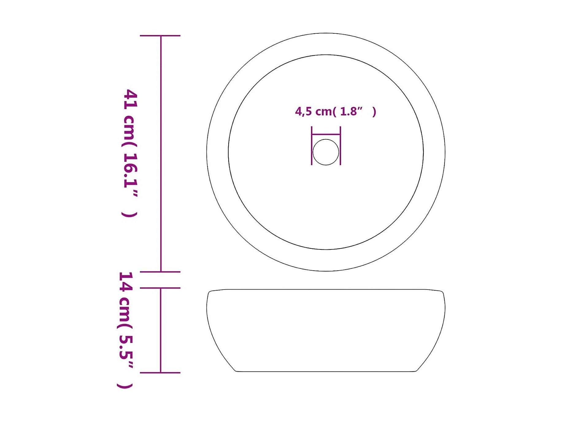 Lavatório Redondo de Cerâmica Preto e Castanho 41x14 cm para Banheiro