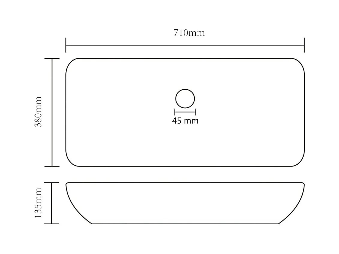 Pia retangular luxuosa cinza escuro fosco 71x38 cm cerâmica
