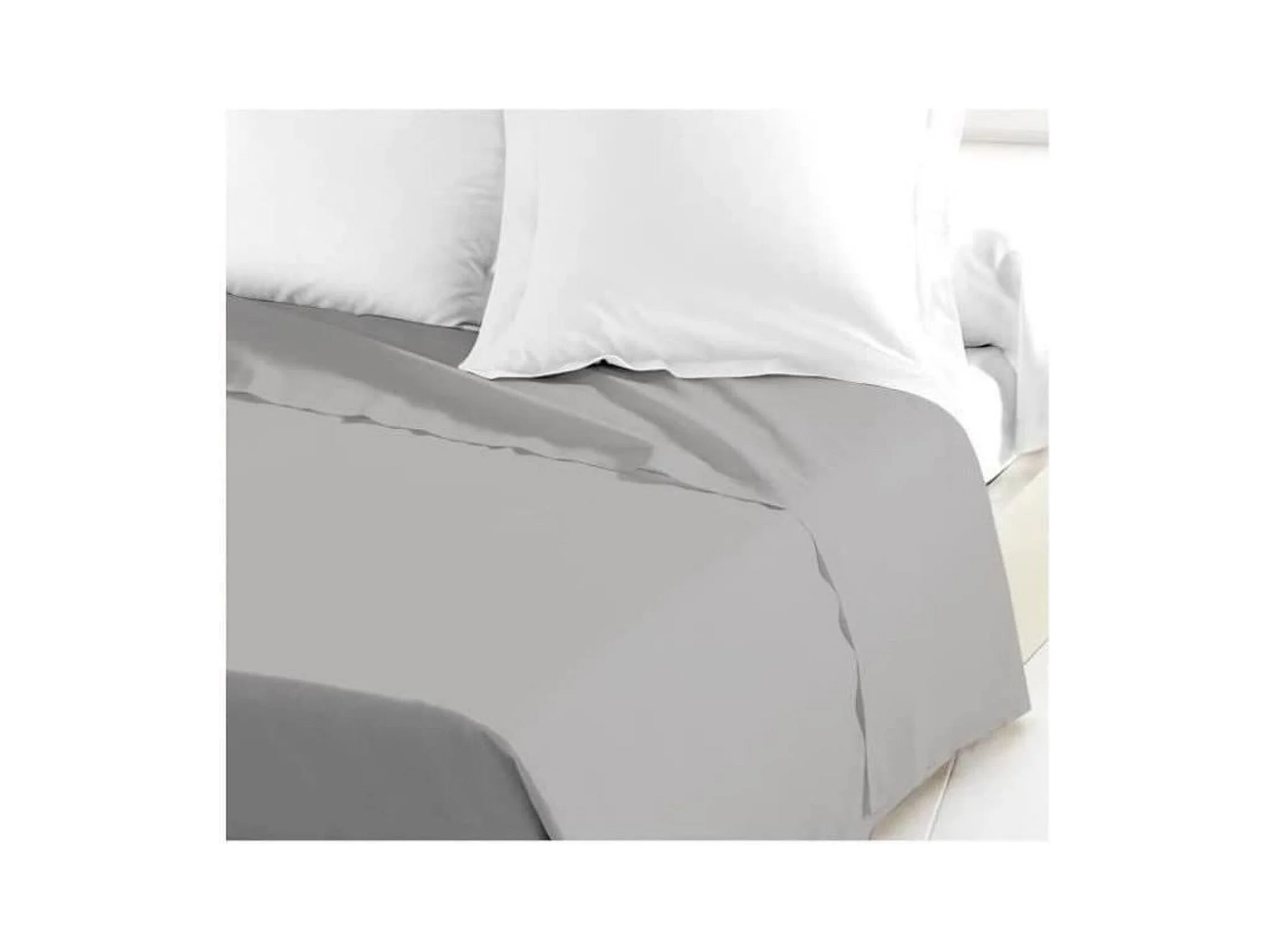 Lençol Plano 100% Algodão 180x290 cm Cinza Claro OEKO-TEX Lavável na Máquina