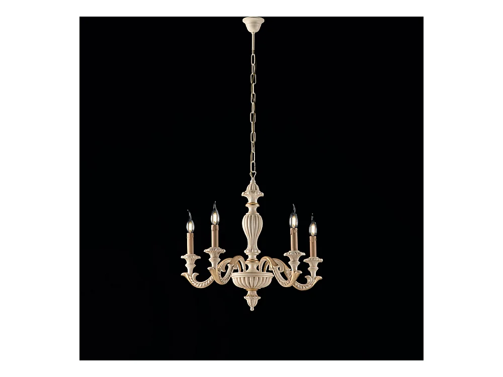 Leonardo - Lustre em madeira marfim e folha de ouro 5 luzes 117 - Ø53 - BL180-5-AV