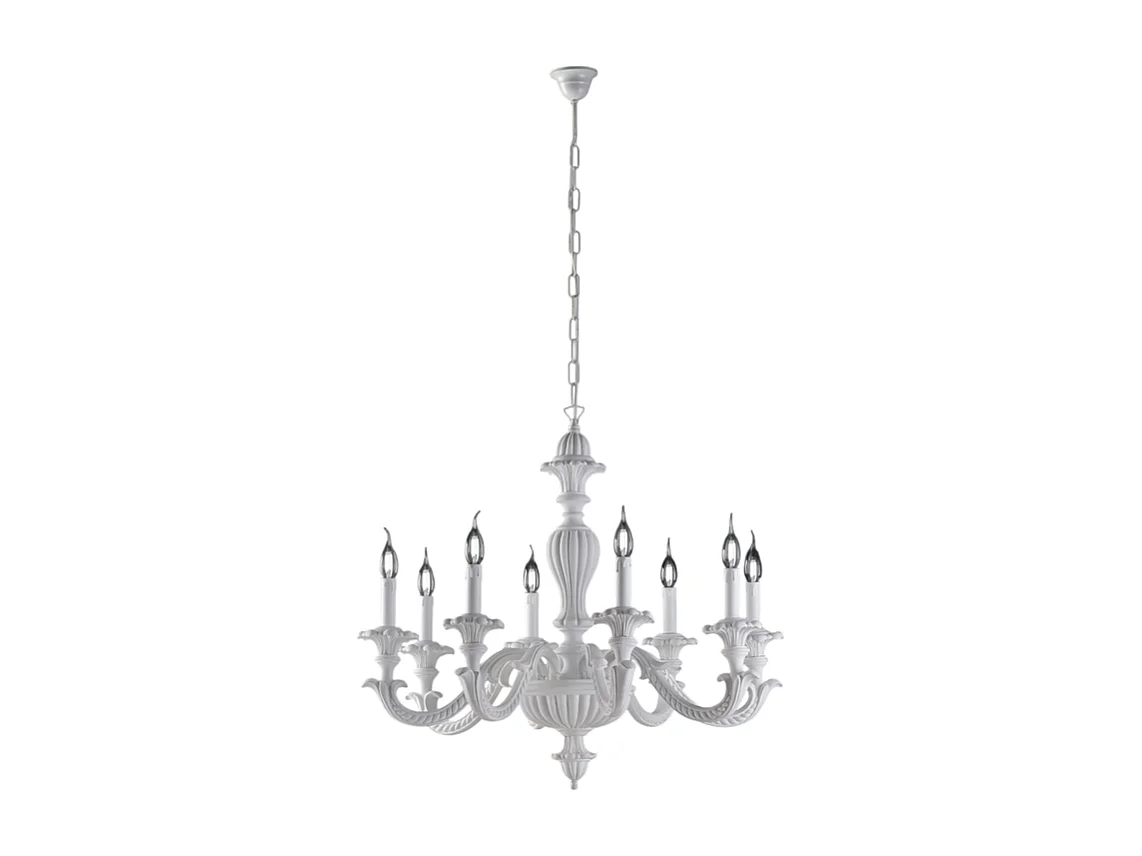 Leonardo - Lustre de madeira branco gasto 8 luzes 130 - Ø80 - BL180-8-BCO