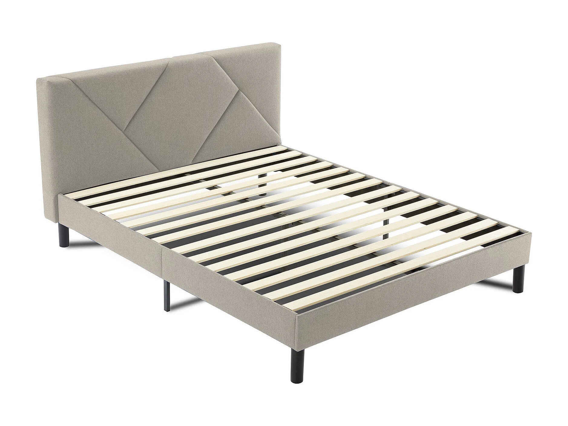 Letto matrimoniale Caldes, Letto imbottito in tessuto con testiera, Doghe in legno, adatto a materasso da 160x190, Tortora