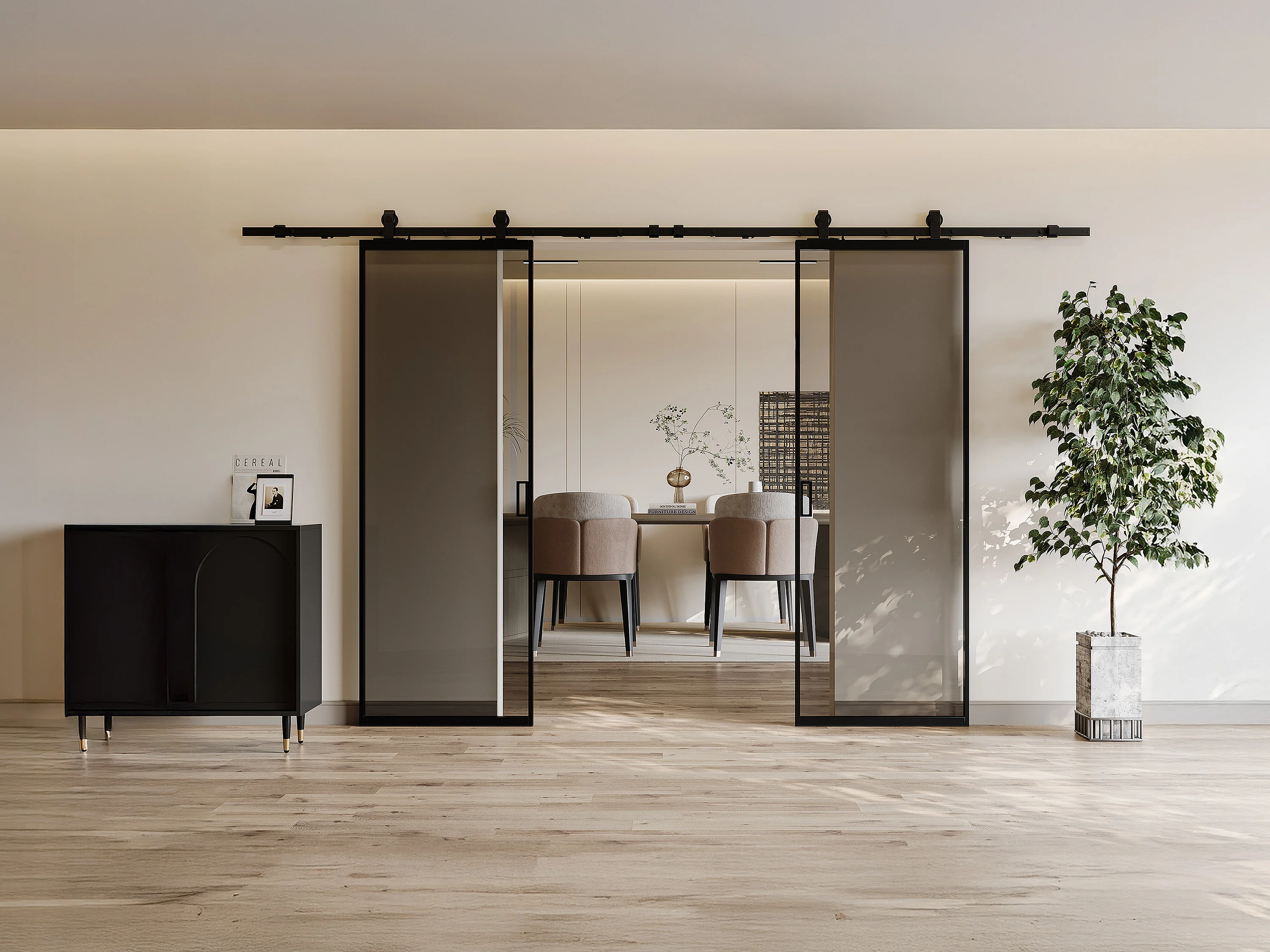 Porta de correr dupla com sistema em aplique, alumínio e vidro temperado fumado 2 x A205 x C63 cm - LINCI II