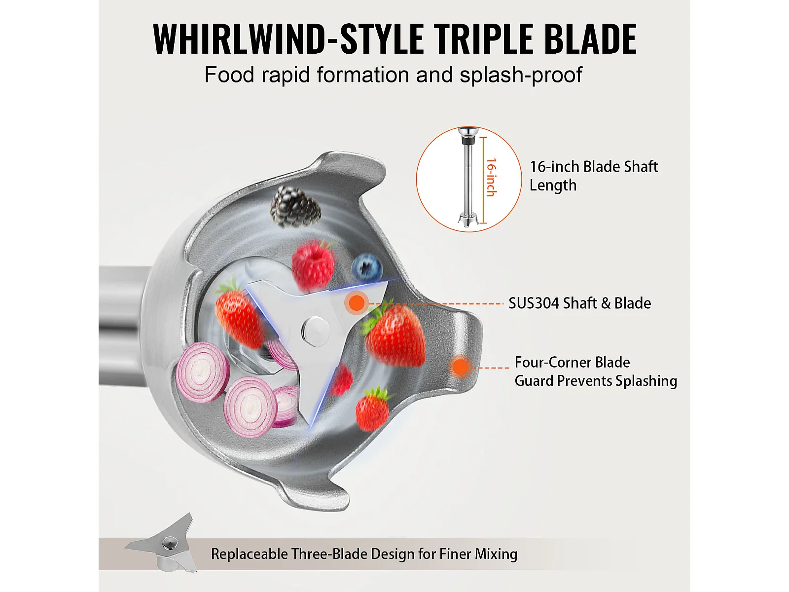 Liquidificador de Imersão Comercial SucceBuy de 350 W, Liquidificador Manual de Alta Resistência para Sopas e Molhos