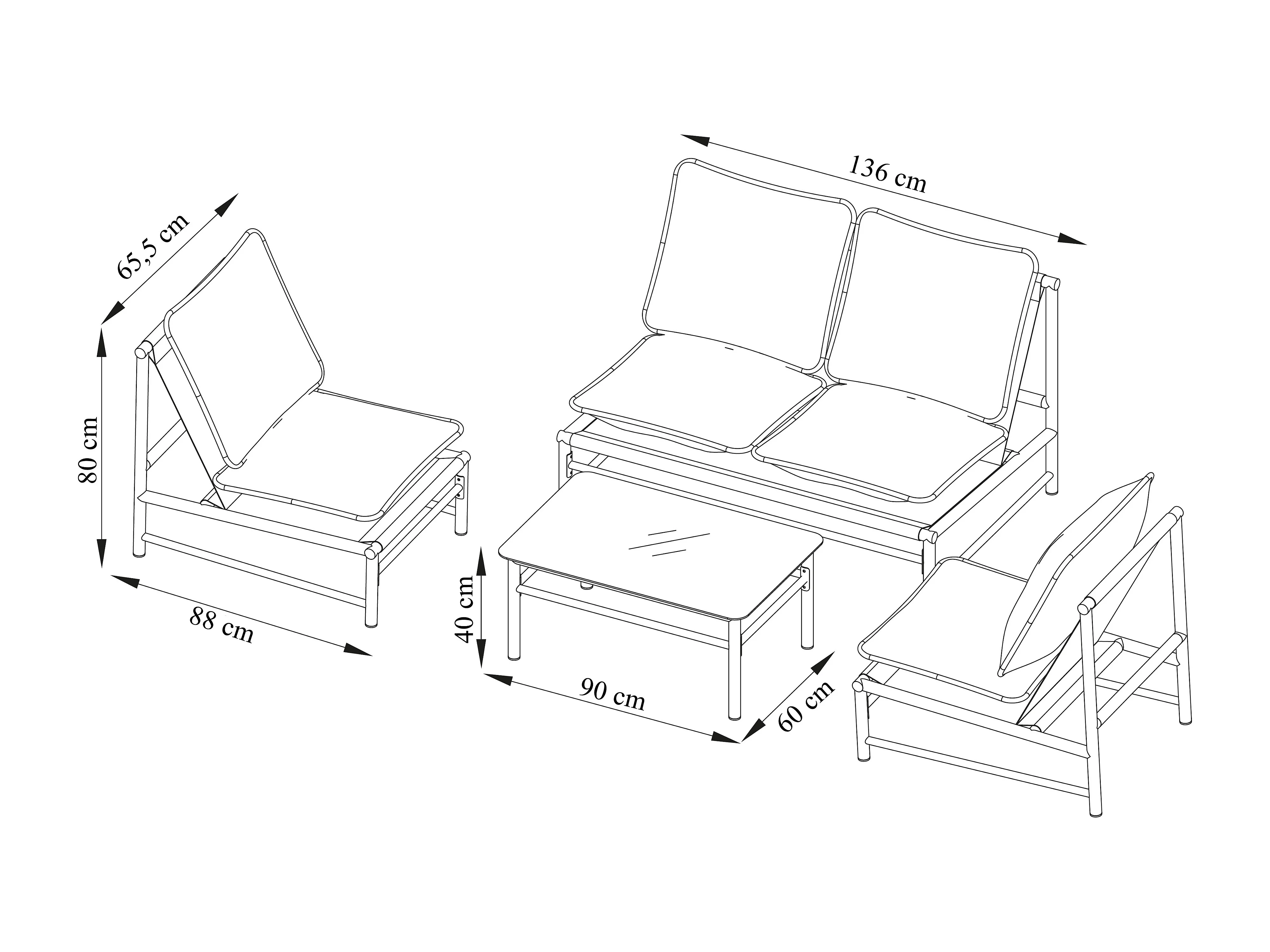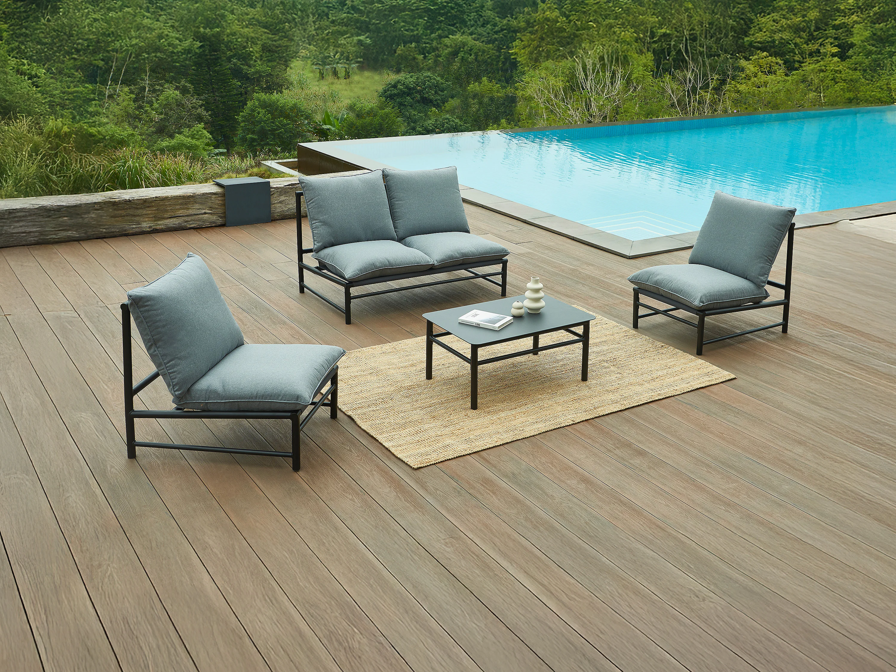 Conjunto de jardim em alumínio: um sofá de 2 lugares, 2 poltronas e uma mesa de centro - Antracite - LISMO da MYLIA