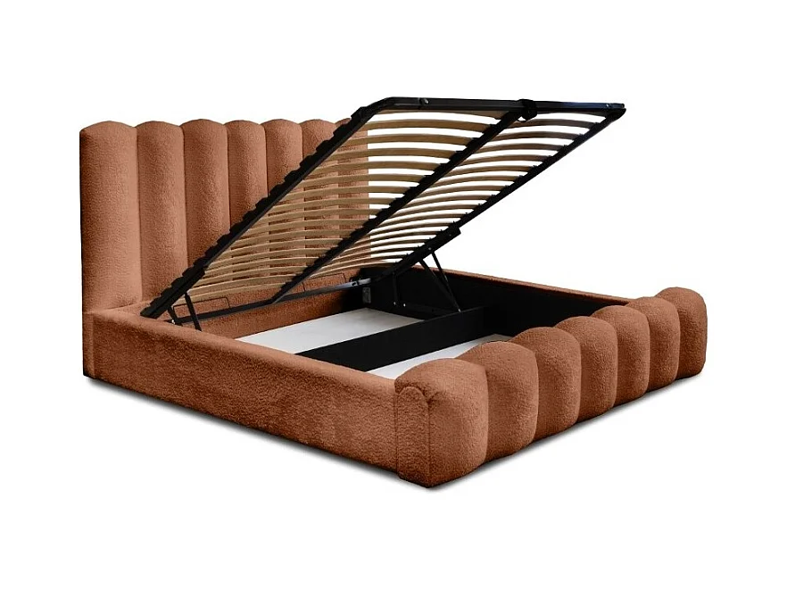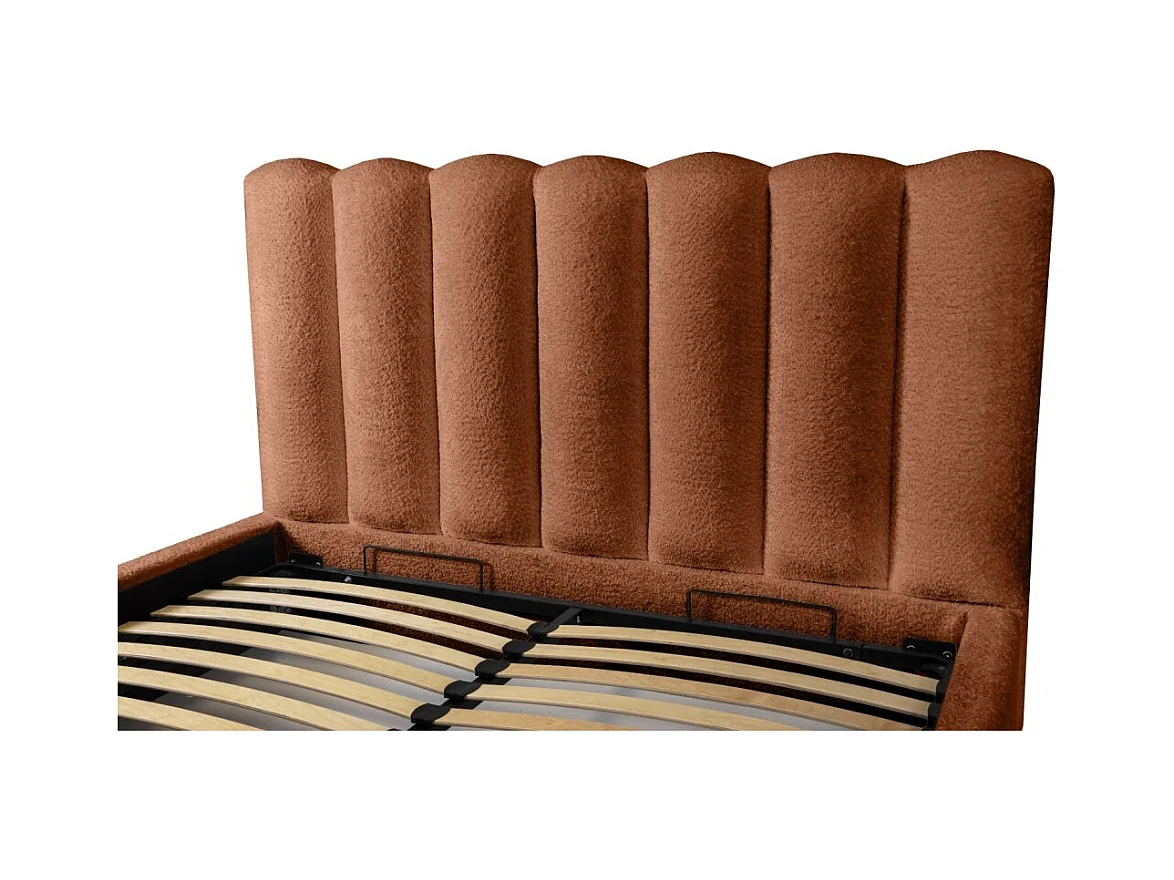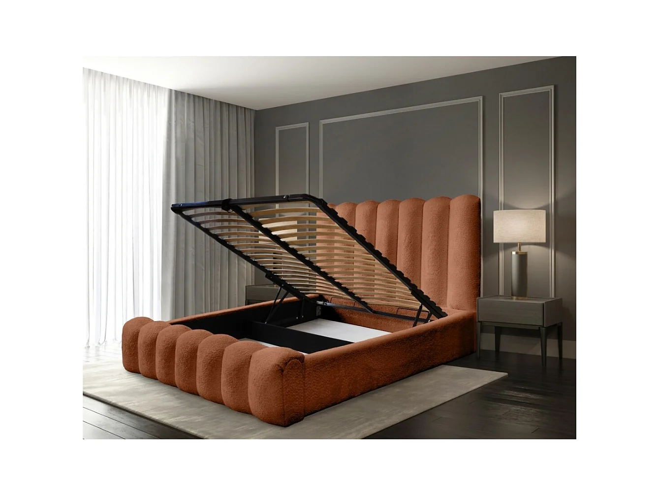 Lit coffre BADJA – Tecido bouclê Terracota – 140x200 cm – Estrado elevatório – Design de alta qualidade