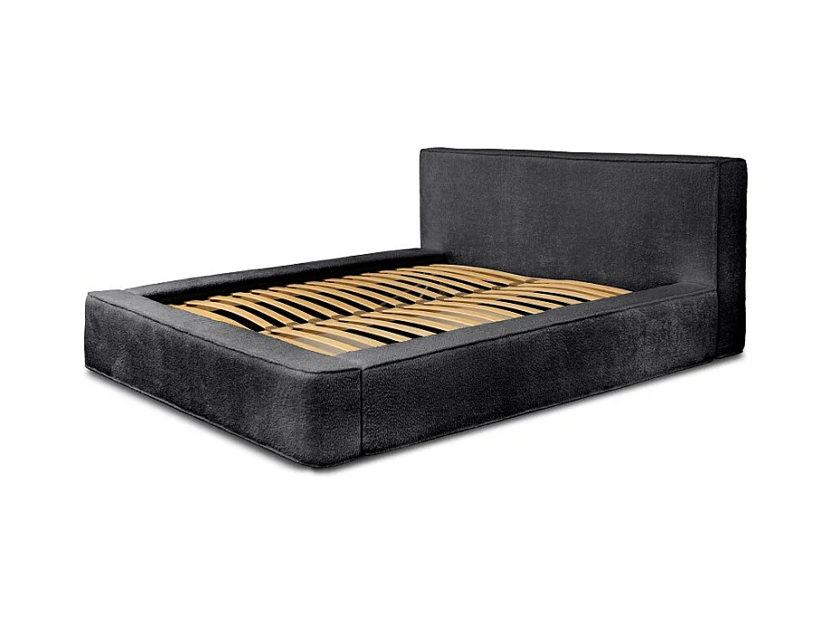 Lit coffre CERVIN – Veludo suave Carvão Mineral – 180x200 cm – Estrado elevatório – Design contemporâneo