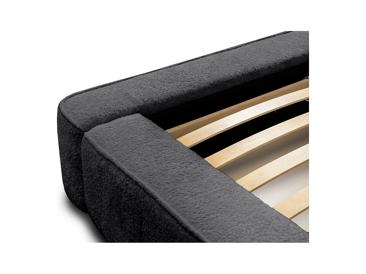 Lit coffre DENALI – Antracite profundo bouclé – 180x200 cm – Tecido de veludo macio – Estrado elevatório – Armazenamento integrado