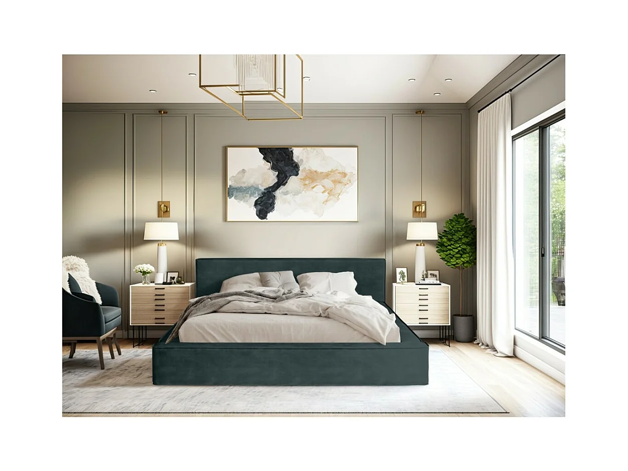 Lit coffre DENALI – Verde esmeralda – 180x200 cm – Tecido de veludo suave – Estrado elevatório – Armazenamento integrado