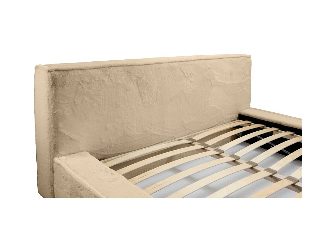 Cama baú AMALIE 180x200 cm – Cabeceira estofada tecido bege – Estrado incluído – Colchão não incluído