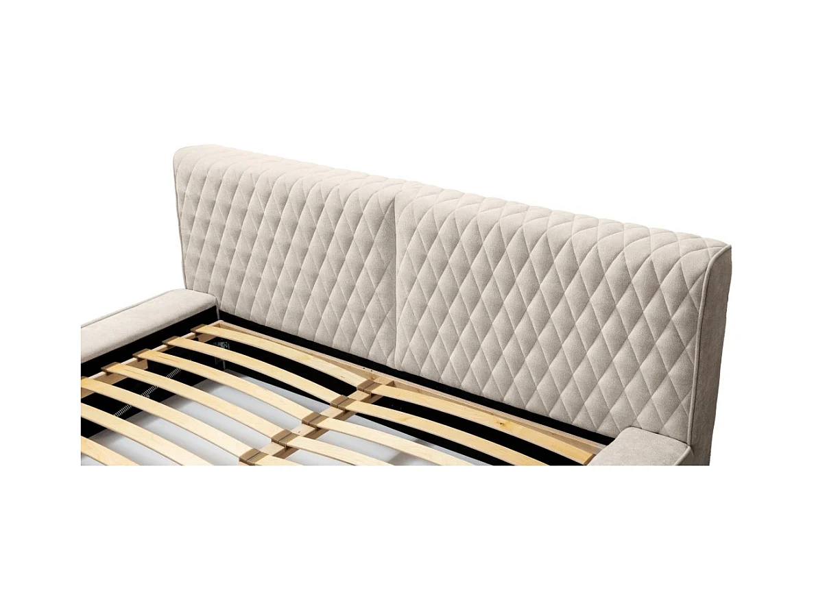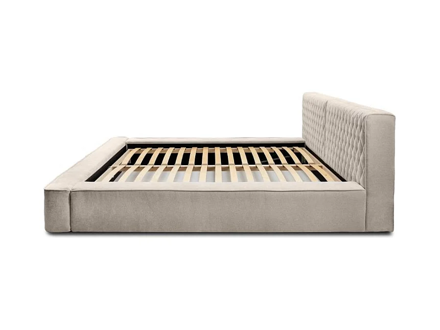 Lit coffre VERNON – Tecido chenille bouclé Areia rosada – 180x200 cm – Estrado elevatório – Design de alta qualidade
