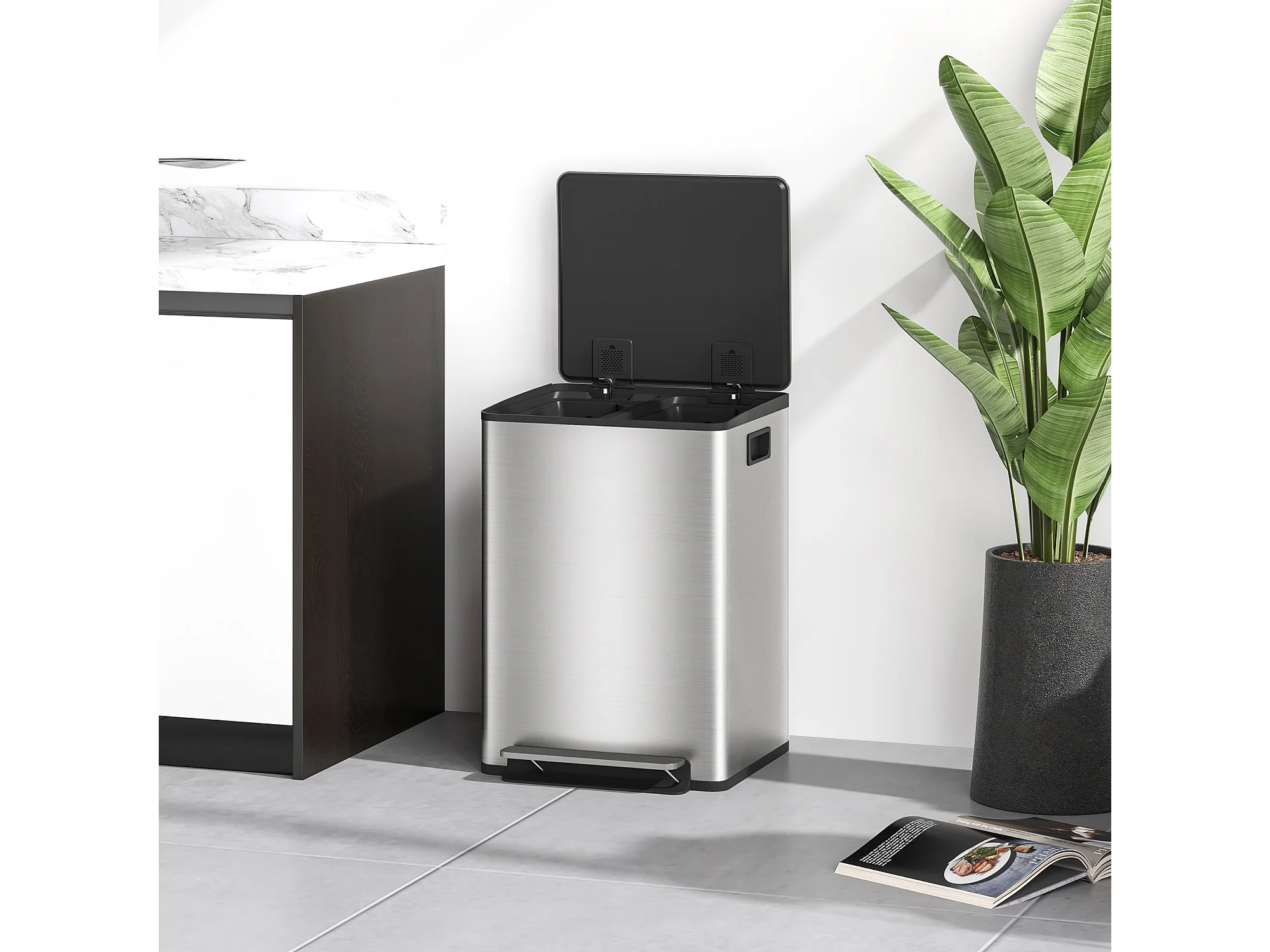 Lixeira de Cozinha HOMCOM com 2 Compartimentos de 20L em Aço Inoxidável com Fecho Suave