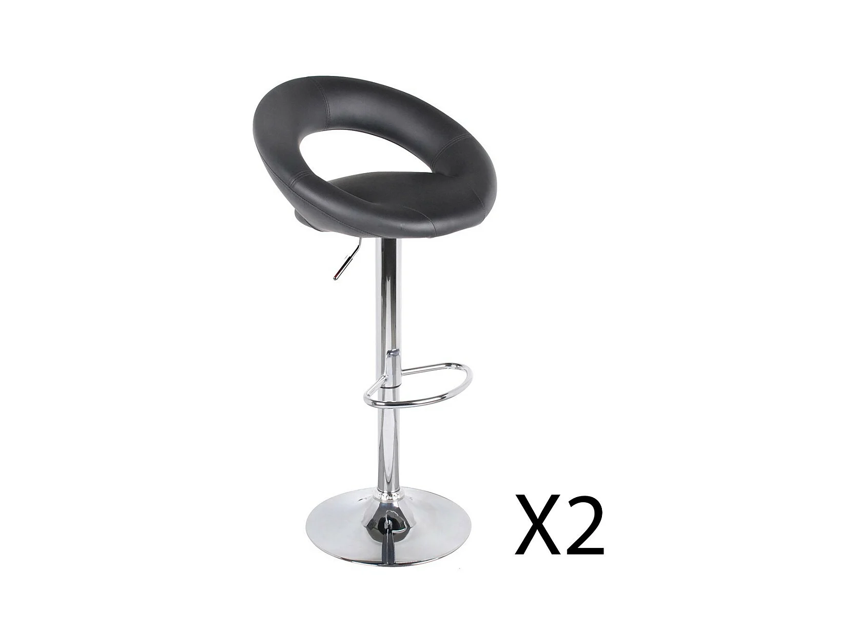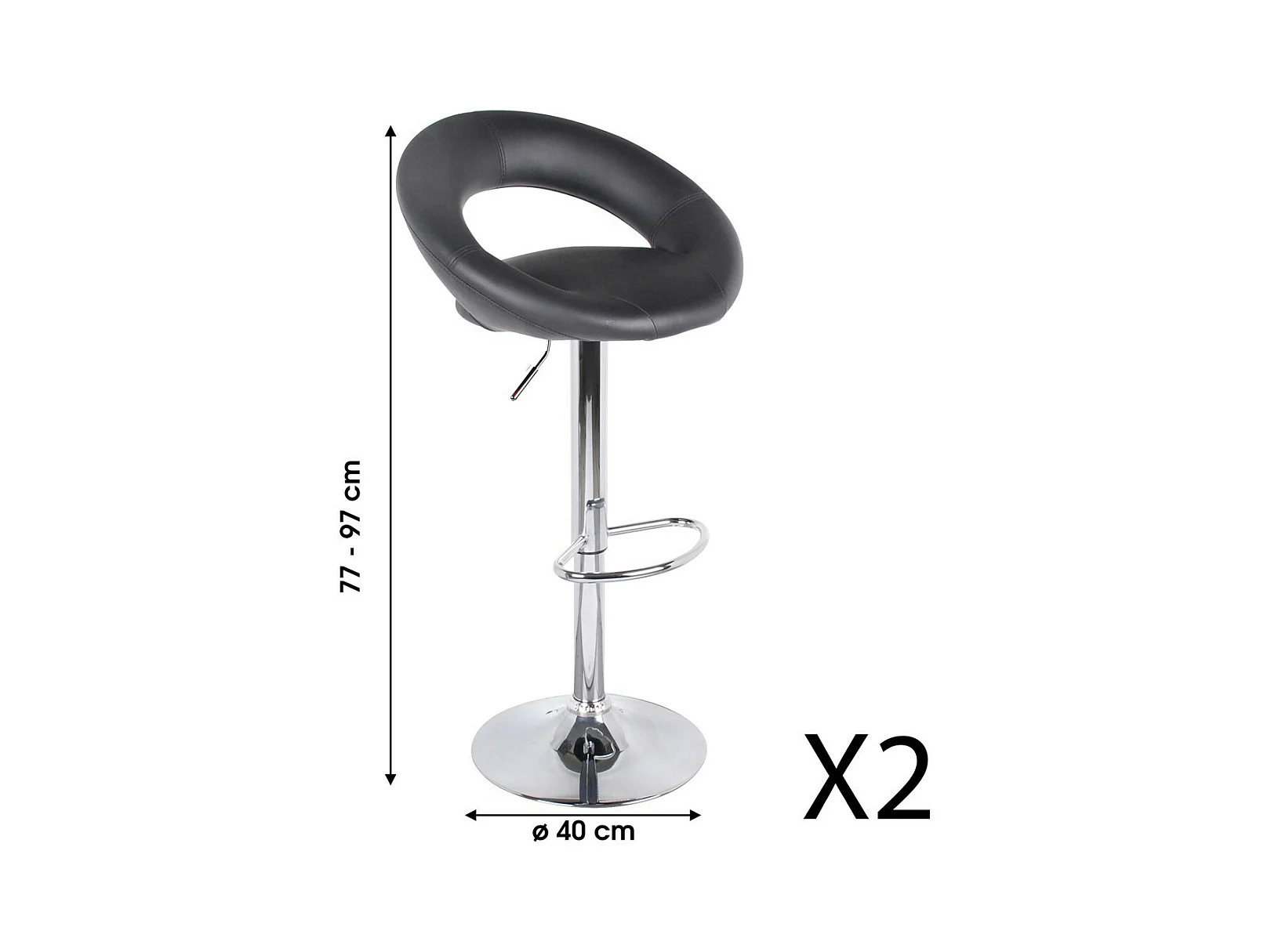 Lot de 2 tabourets de bar réglables en hauteur 77-97 cm – Assise simili cuir PU noir, pied en métal gris, diamètre 40 cm