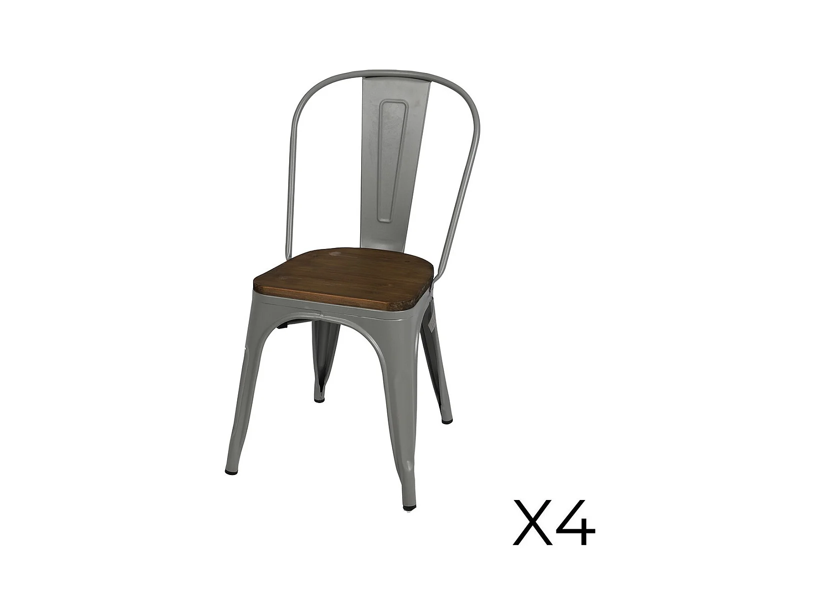 Lot de 4 chaises en métal gris clair style industriel. Collection FACTORY.
