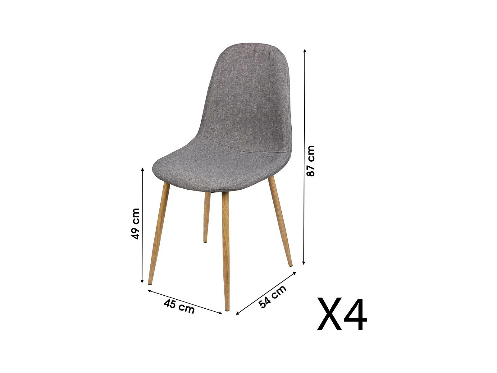 Lot de 4 chaises en tissu gris foncé avec pieds en métal effet bois – 45x87x54 cm, hauteur d'assise 49 cm – Collection NORDICA