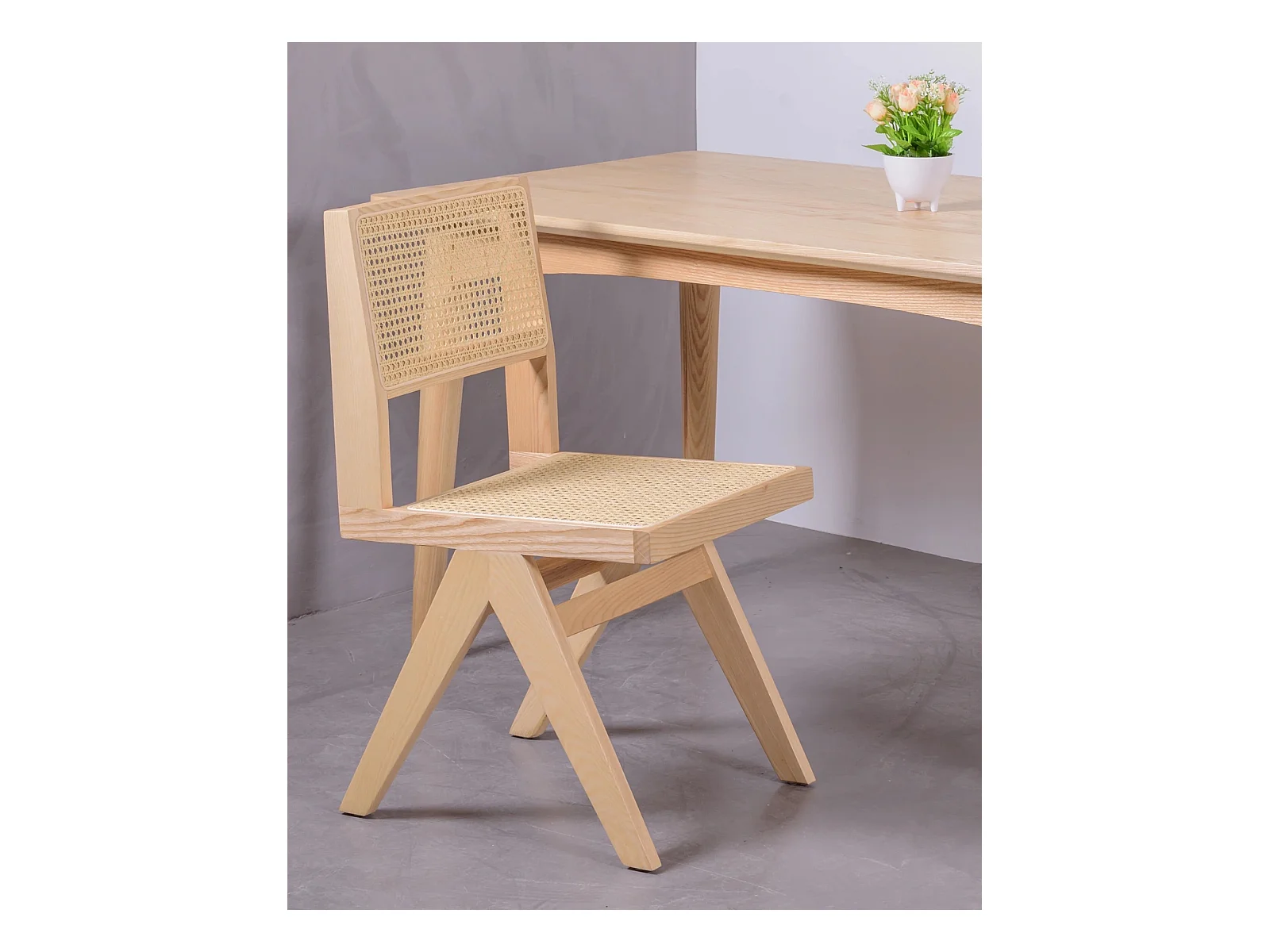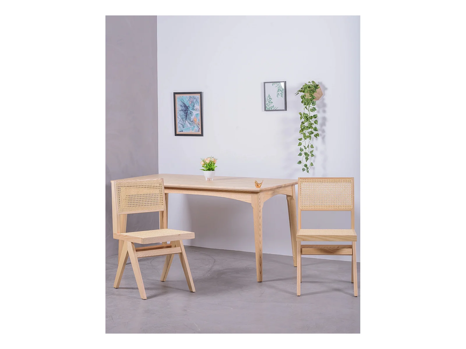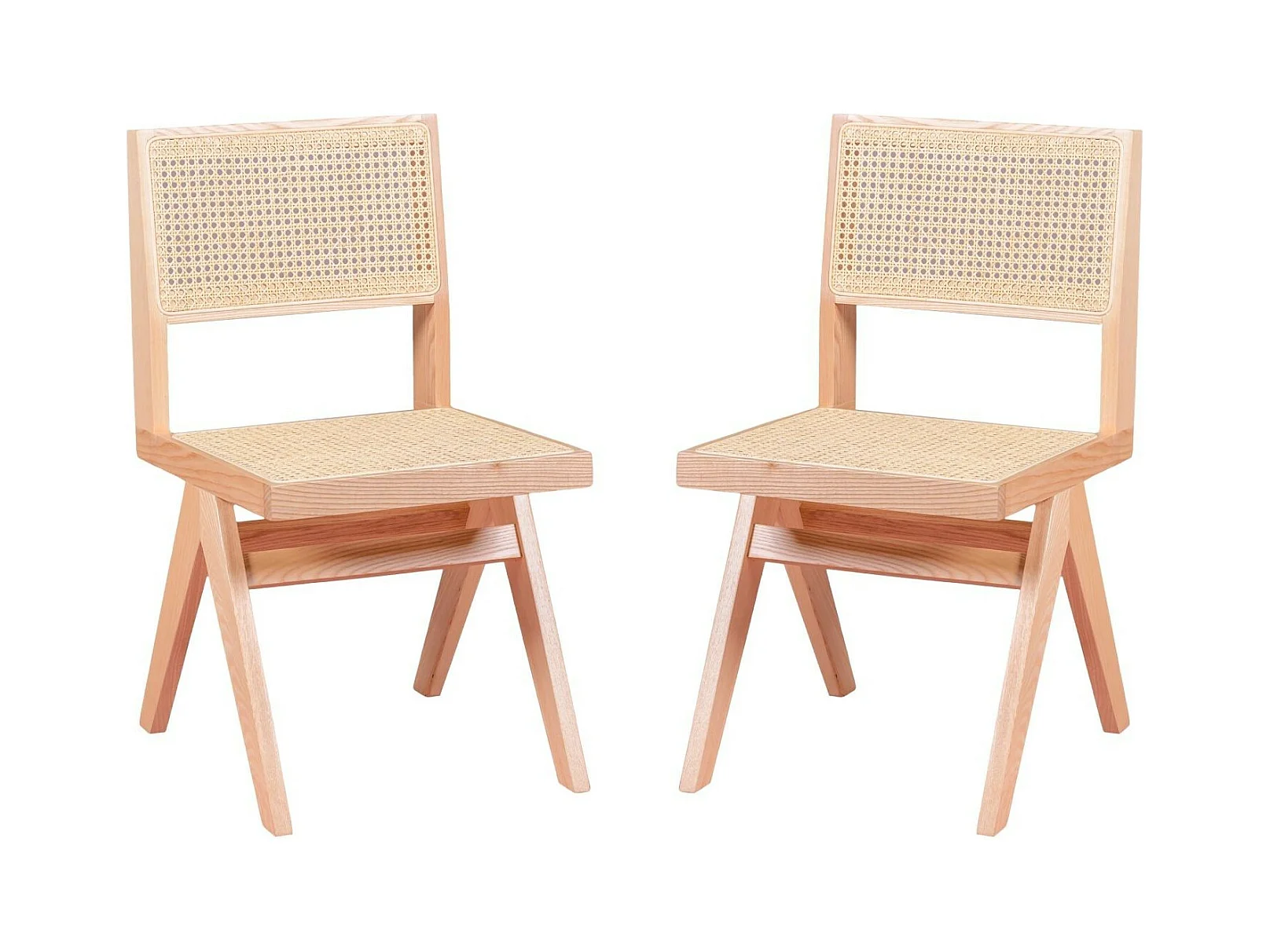 Lote de 2 cadeiras clássicas em madeira e rattan natural - Compass - Cinza Natural