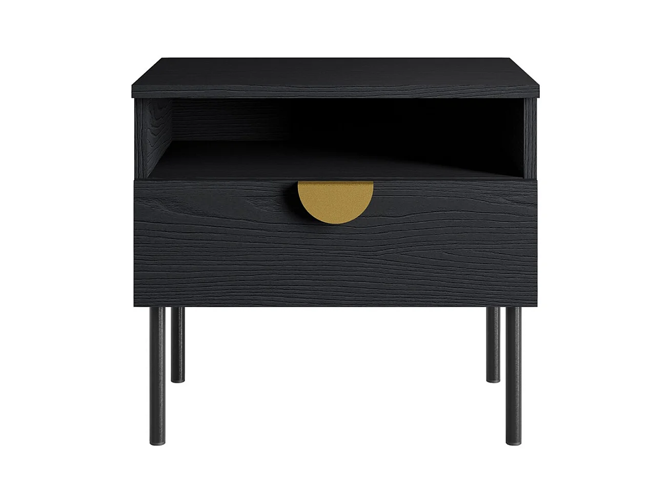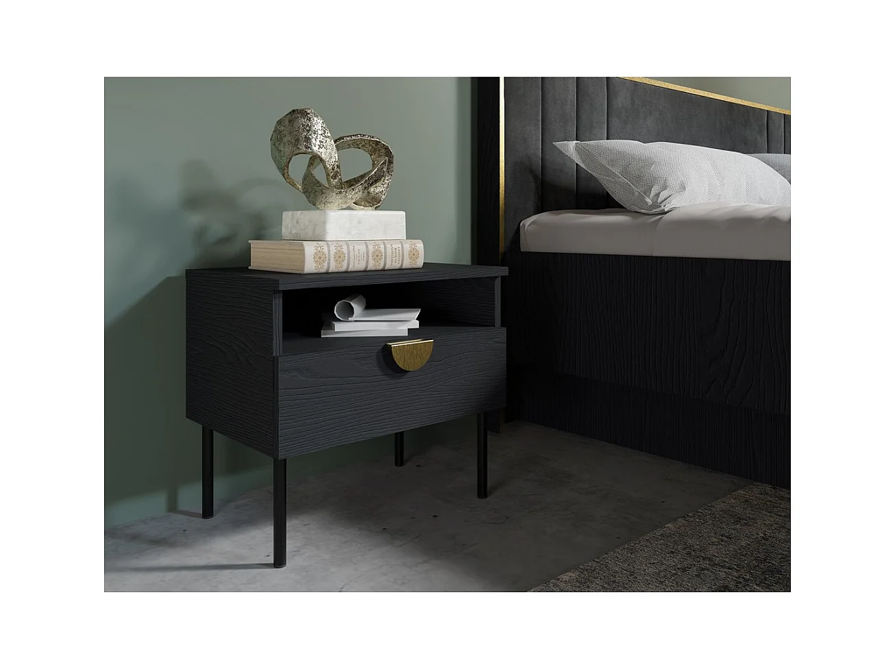 Lote de 2 mesas de cabeceira MONDO – Preto estruturado e dourado – 1 gaveta + nicho – Estilo moderno chique
