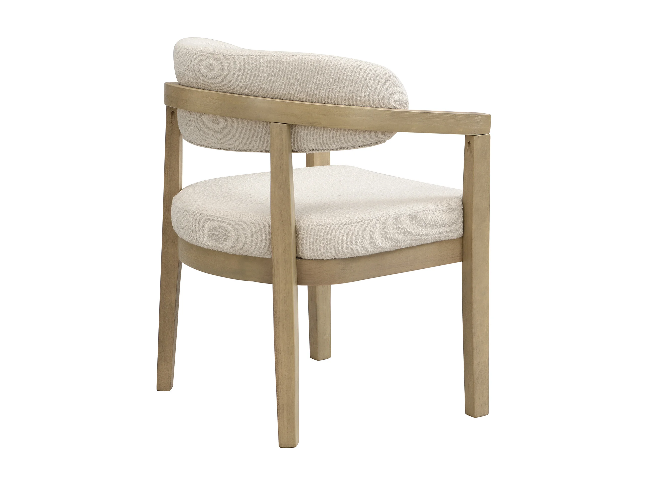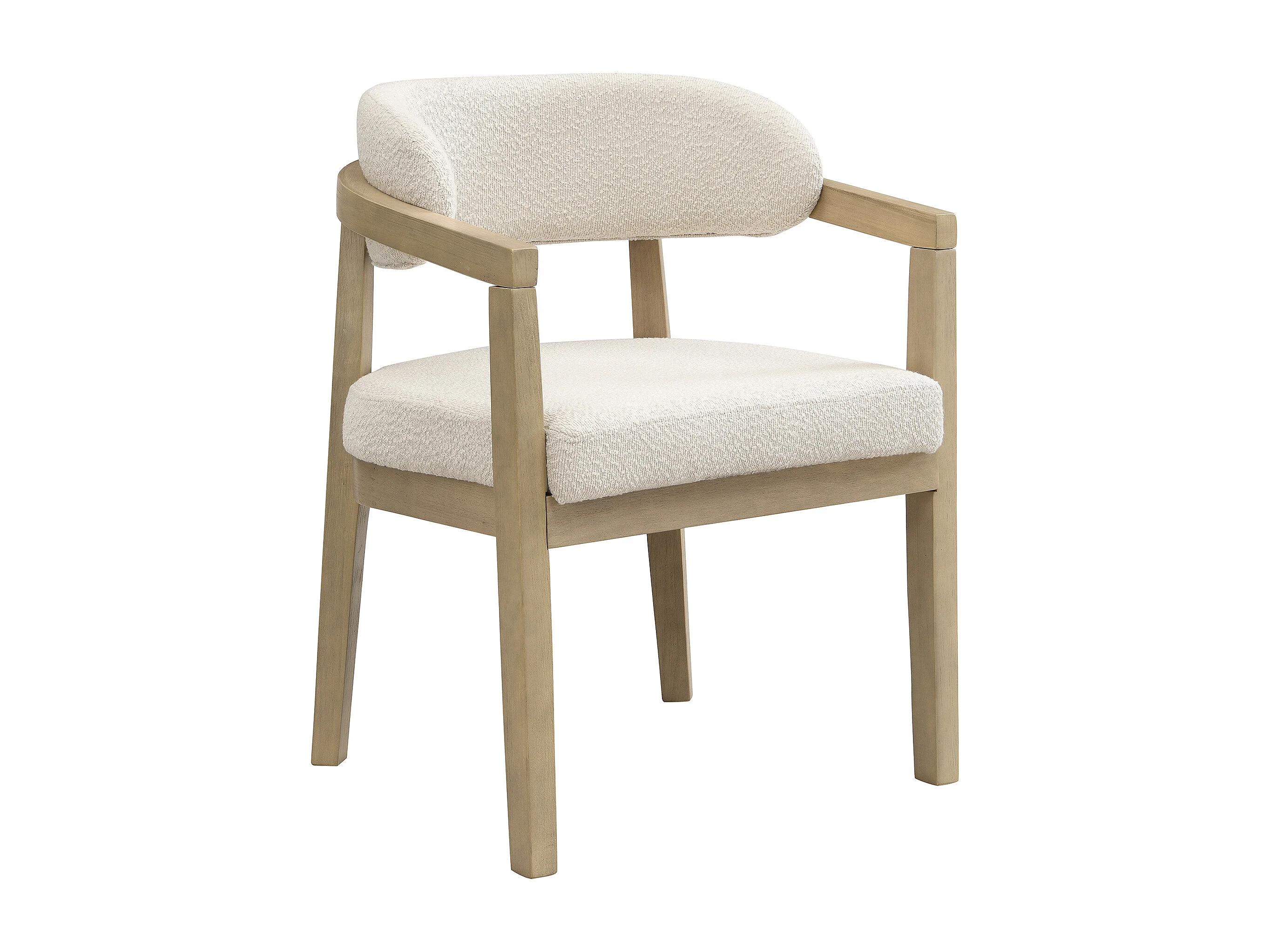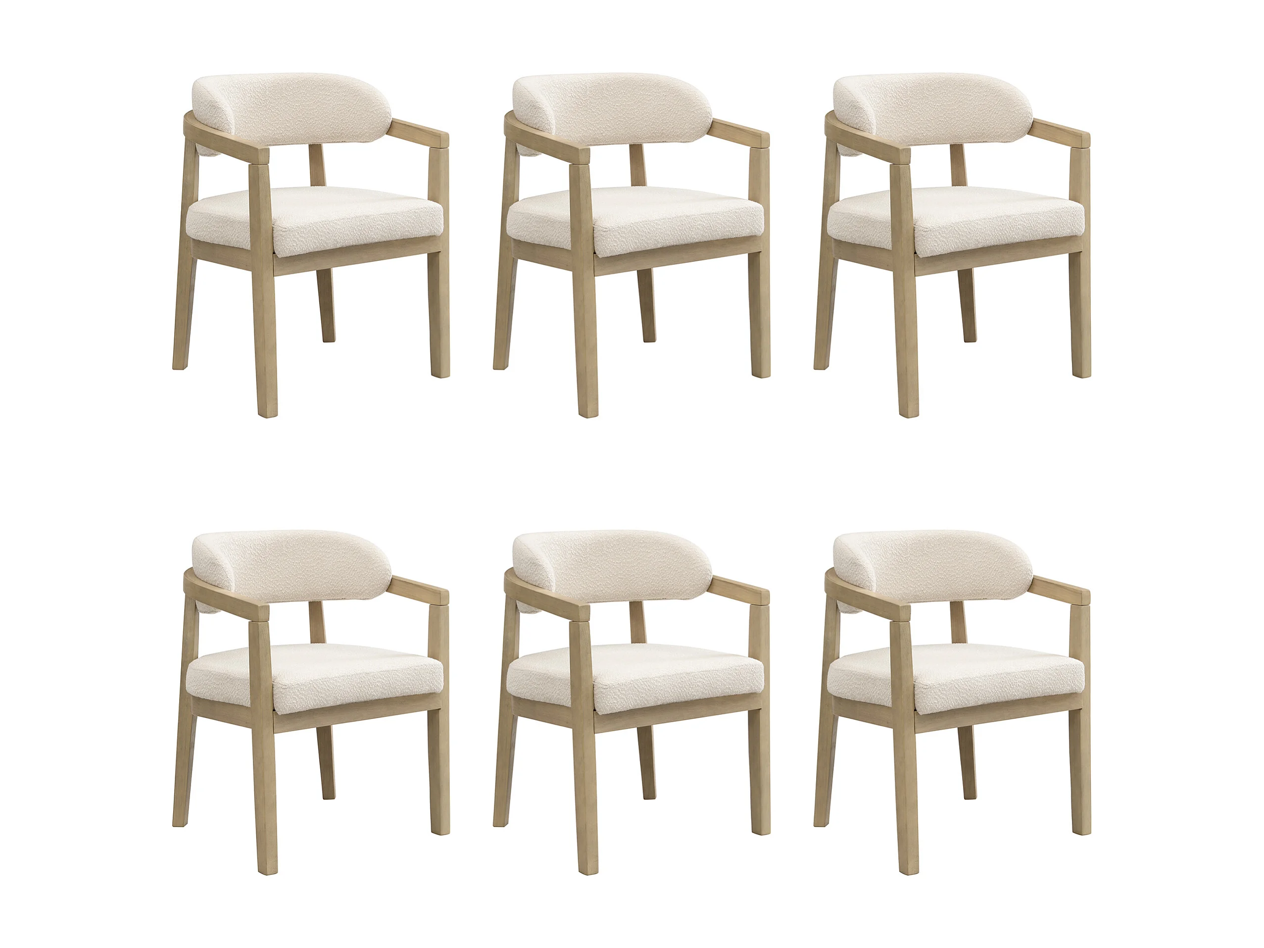 Lote de 6 cadeiras de madeira maciça - Encosto curvo - Com apoio de braços - Revestimento em veludo bouclé - Natural