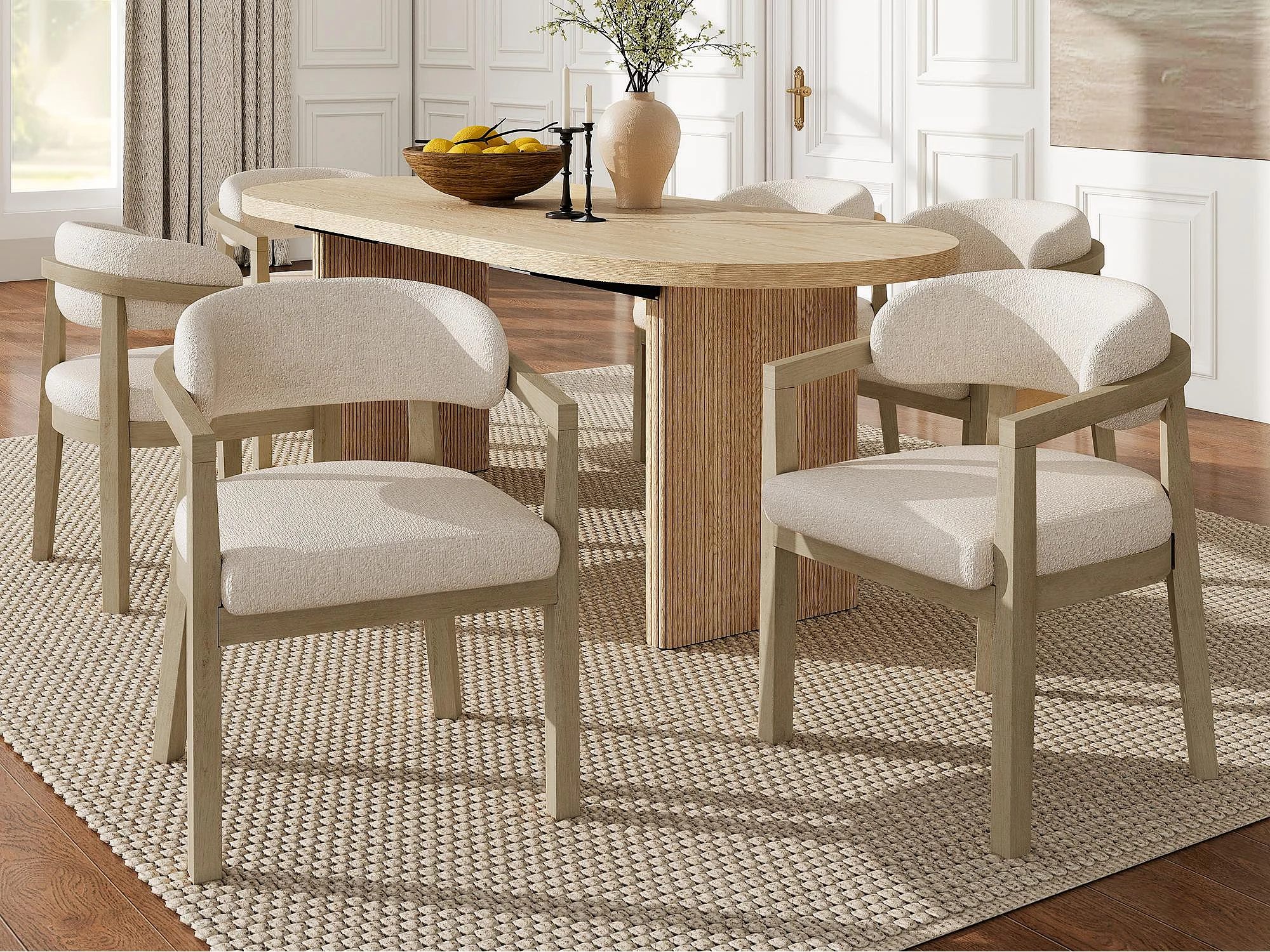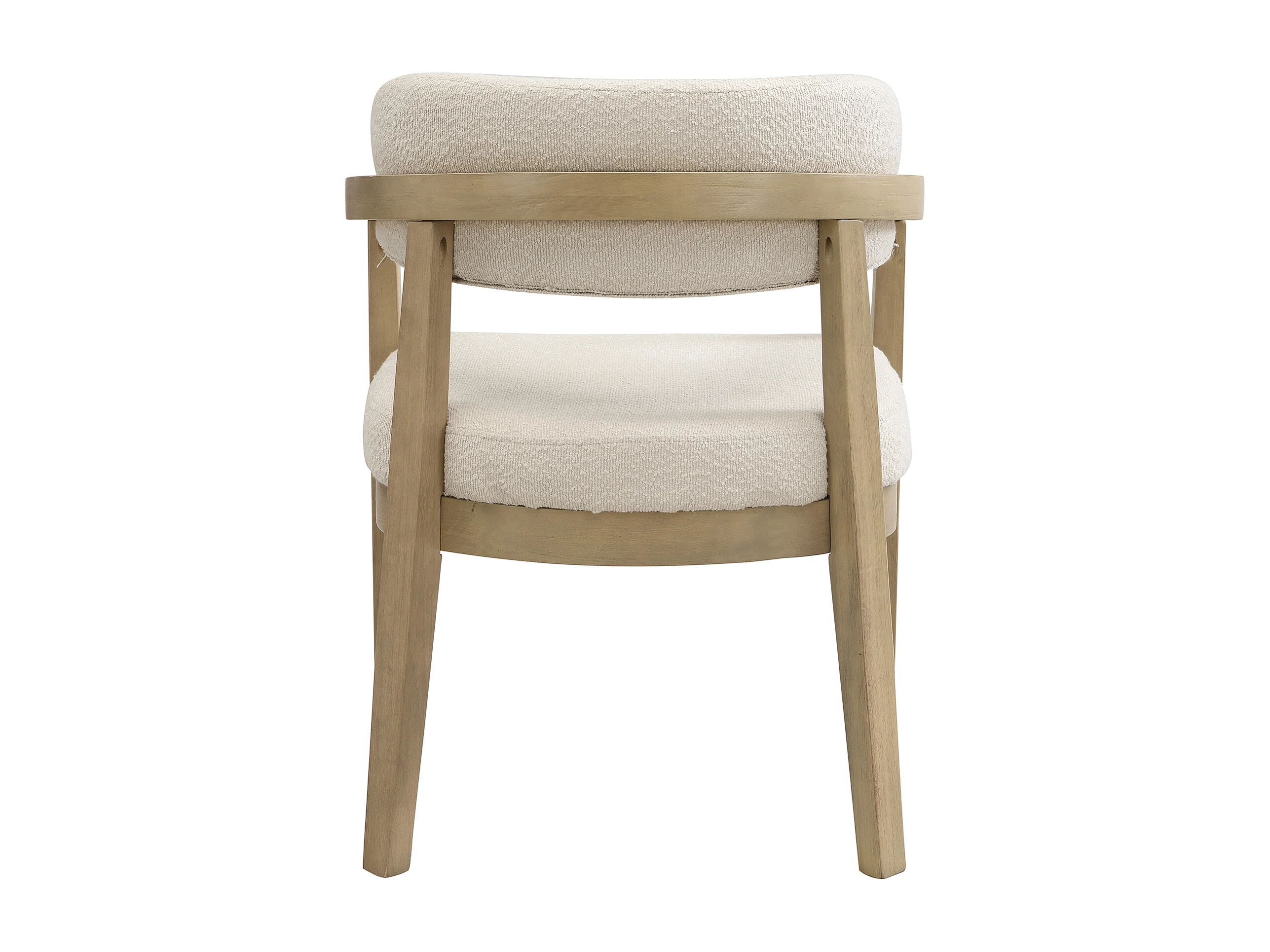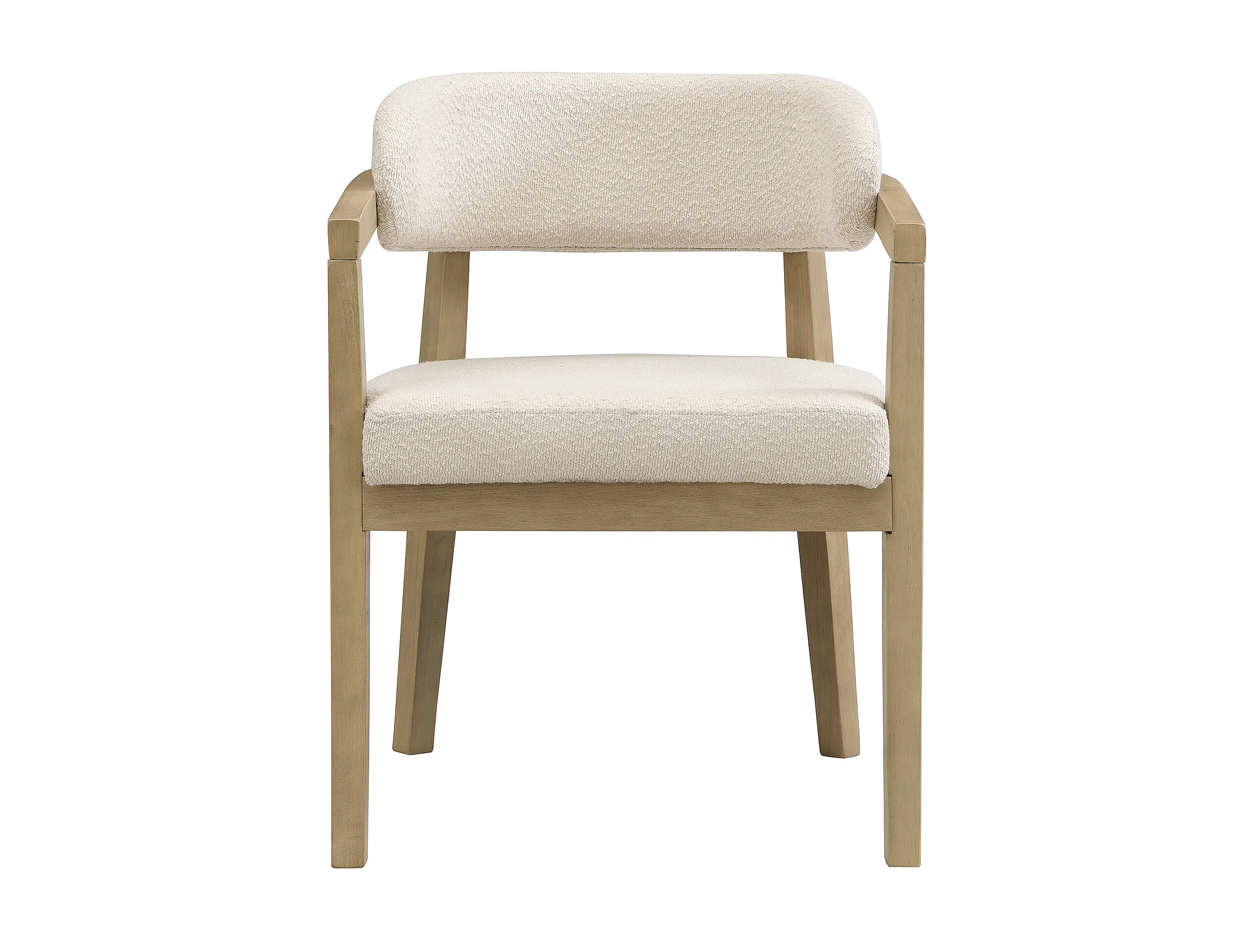 Lote de 6 cadeiras de madeira maciça - Encosto curvo - Com apoio de braços - Revestimento em veludo bouclé - Natural