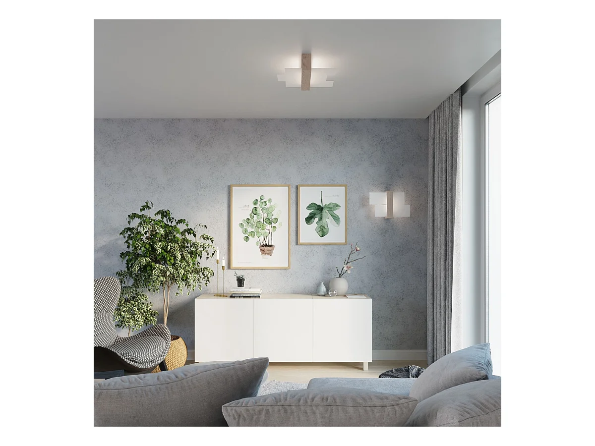 Luminárias De Teto Feniks Escandinavo, Madeira/Vidro - 2 Lichtbronnen - L.43 X H.12 Cm - Madeira Natural