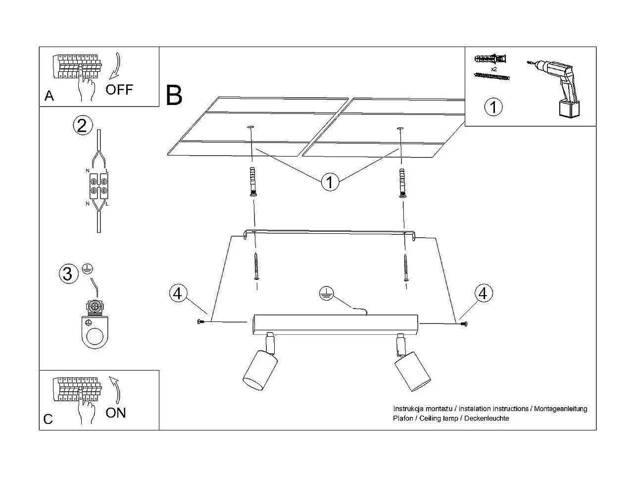 Luminárias de teto Glois moderno, aço - 2 fontes de luz 4000K - L.30 x H.18.5 cm - preto/cromado