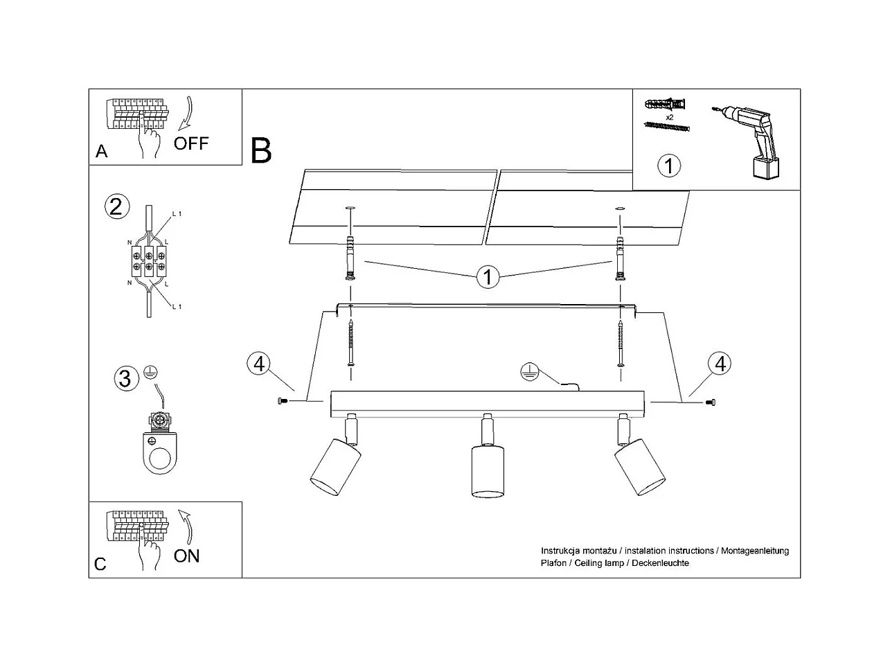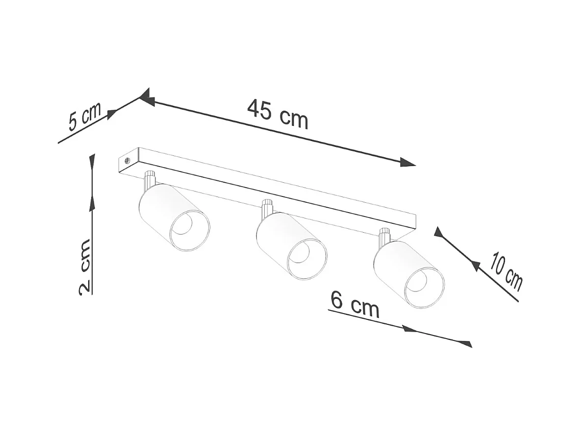 Luminárias de teto Torim minimalista, aço - 3 fontes de luz 3000K - L.46 x H.20 cm - preto