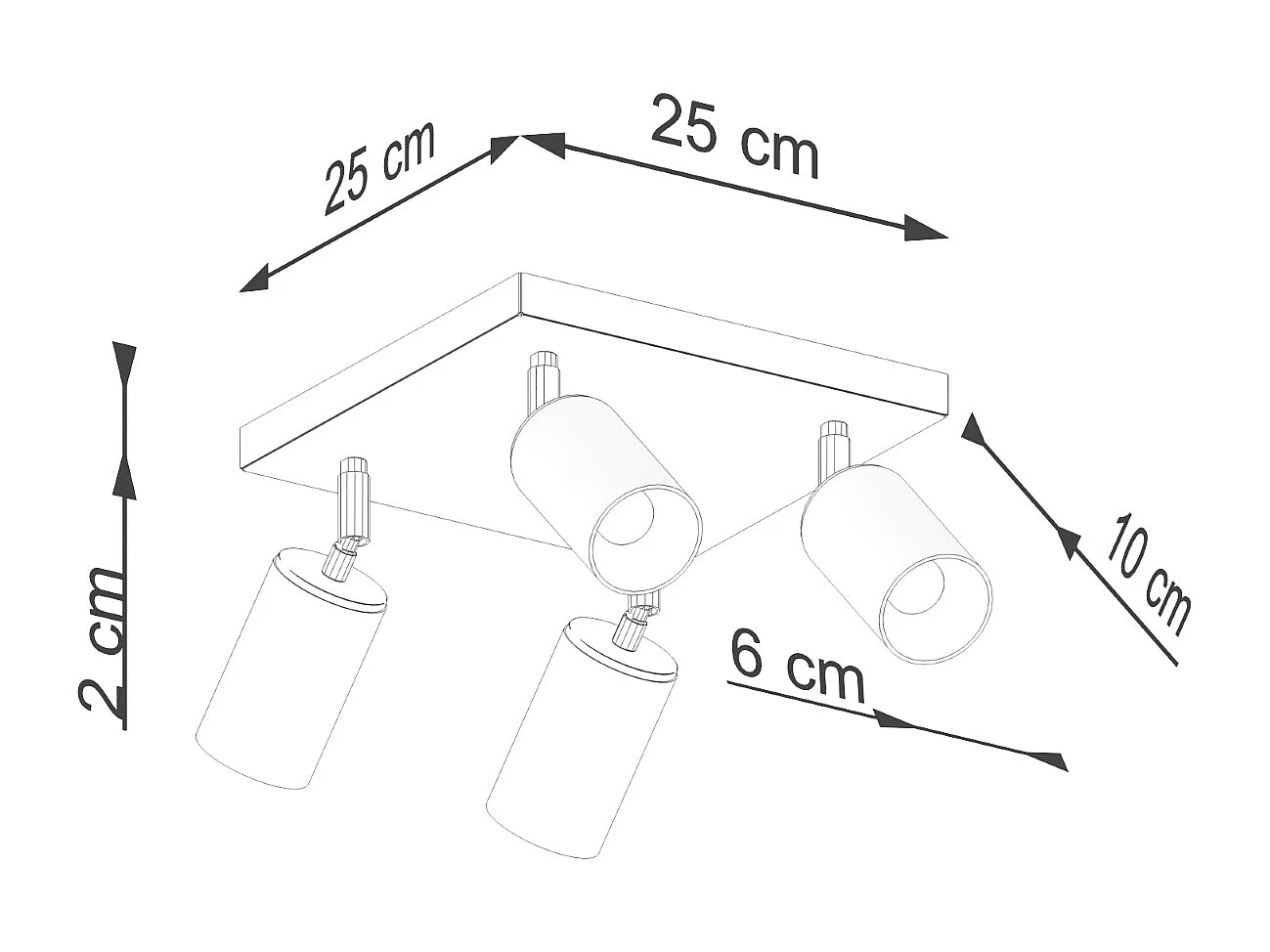 Luminárias de teto Rayis moderno, aço - 4 fontes de luz 4000K - L.25 x H.16 cm - preto