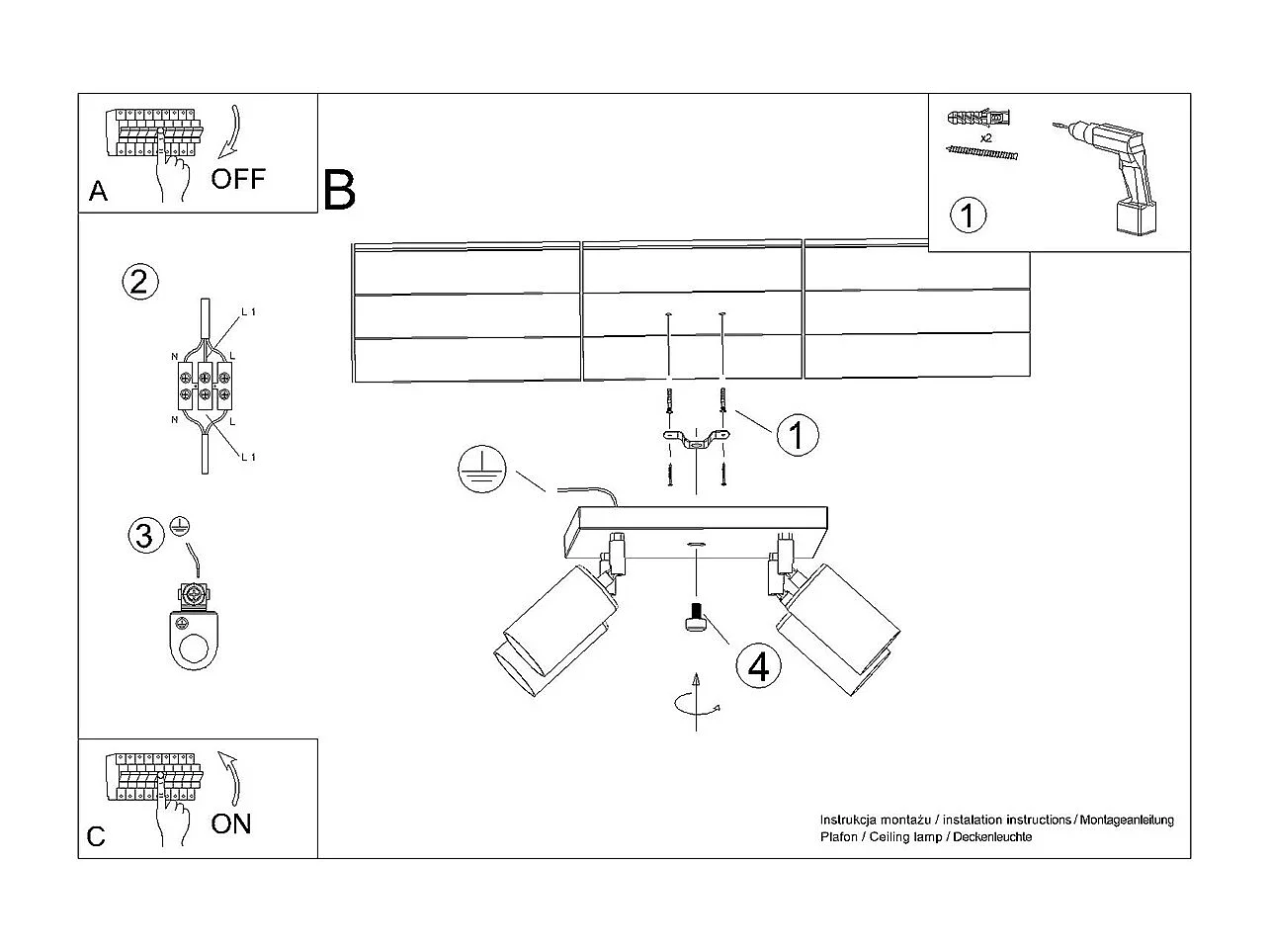 Luminárias de teto Rayis moderno, aço - 4 fontes de luz 3000K - L.25 x H.16 cm - preto