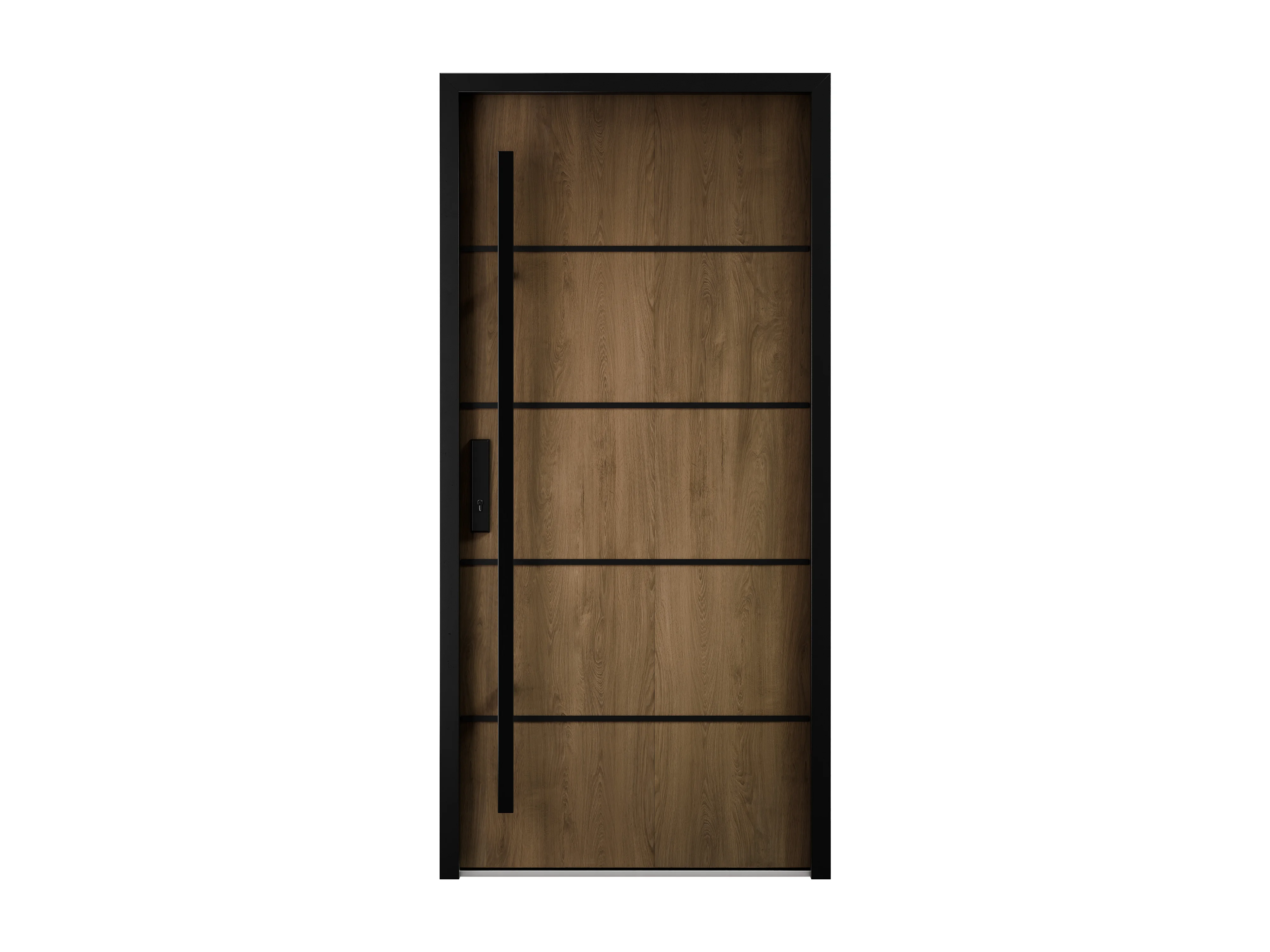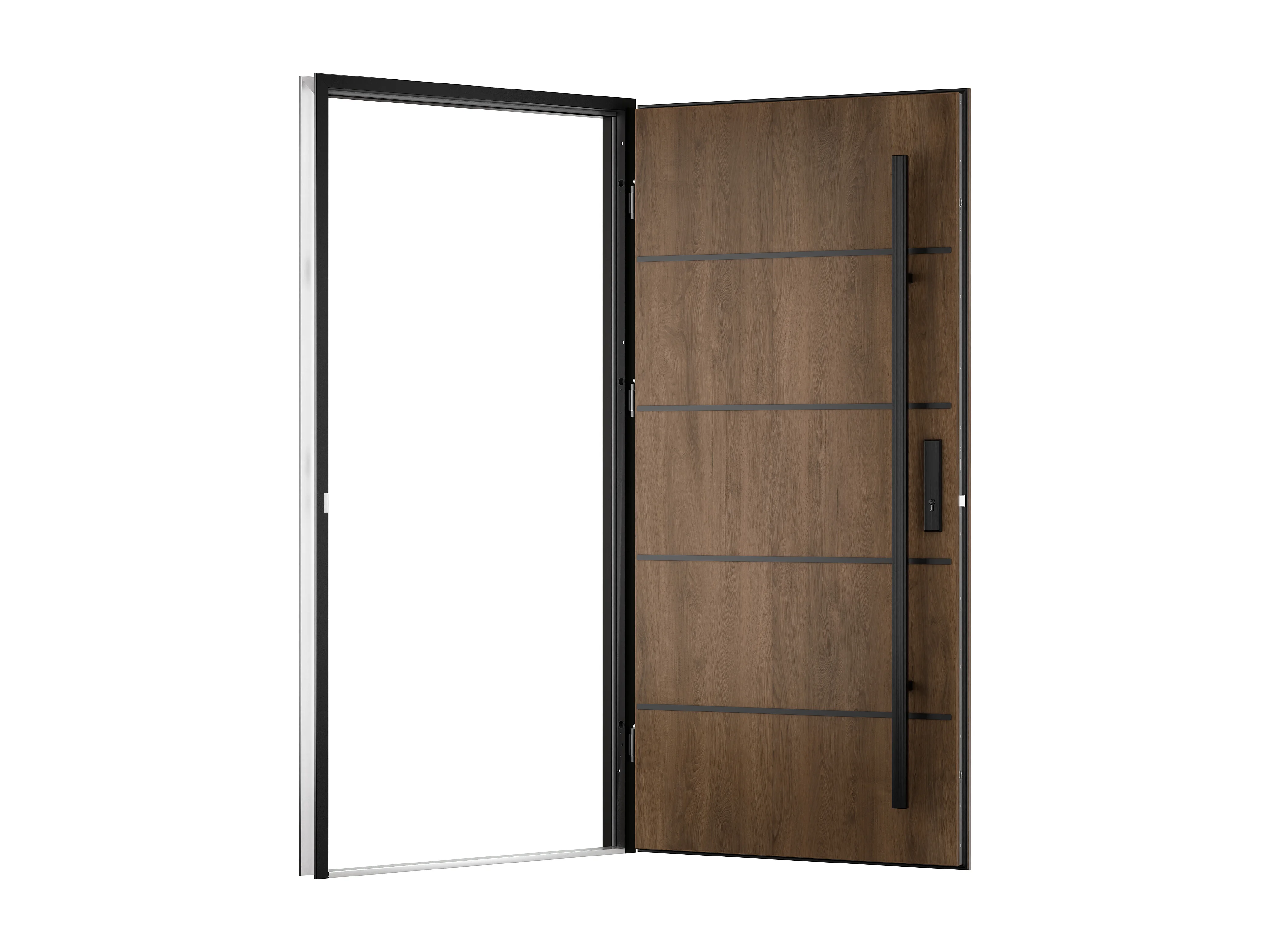 Porta de entrada em aço maciço e inox H207 x C100 cm efeito nogueira - espessura 68 mm - abertura à direita - LUSADA