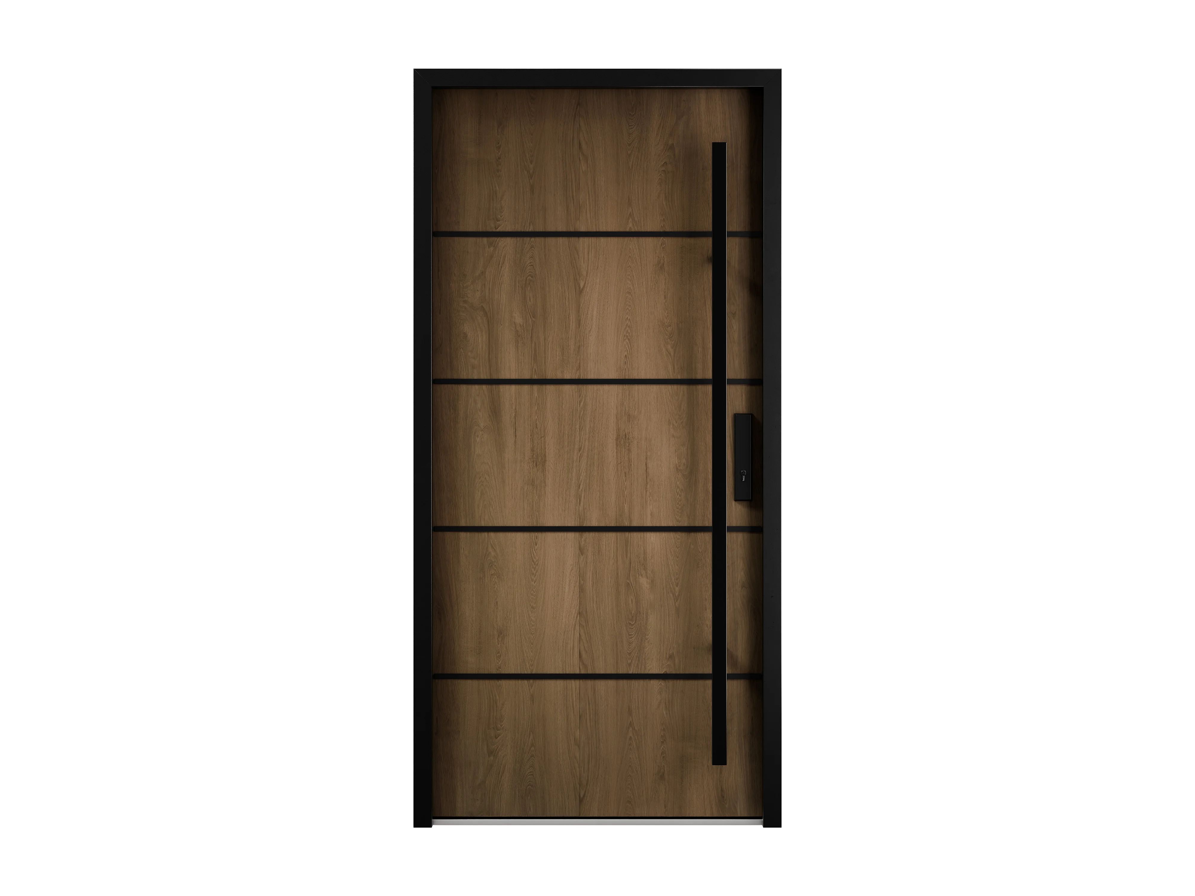 Porta de entrada em aço maciço e inox H207 x C100 cm efeito nogueira - espessura 68 mm - abertura à esquerda - LUSADA
