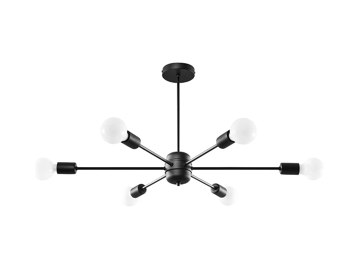 Lustres Luxra sótão, aço - 6 fontes de luz 4000K - L.60 x H.85 cm - preto