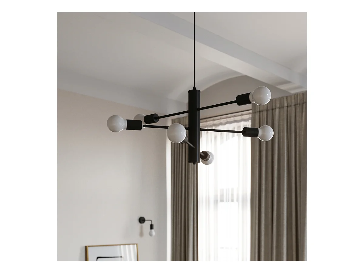 Lustres Luxra sótão, aço - 6 fontes de luz 3000K - L.60 x H.85 cm - preto