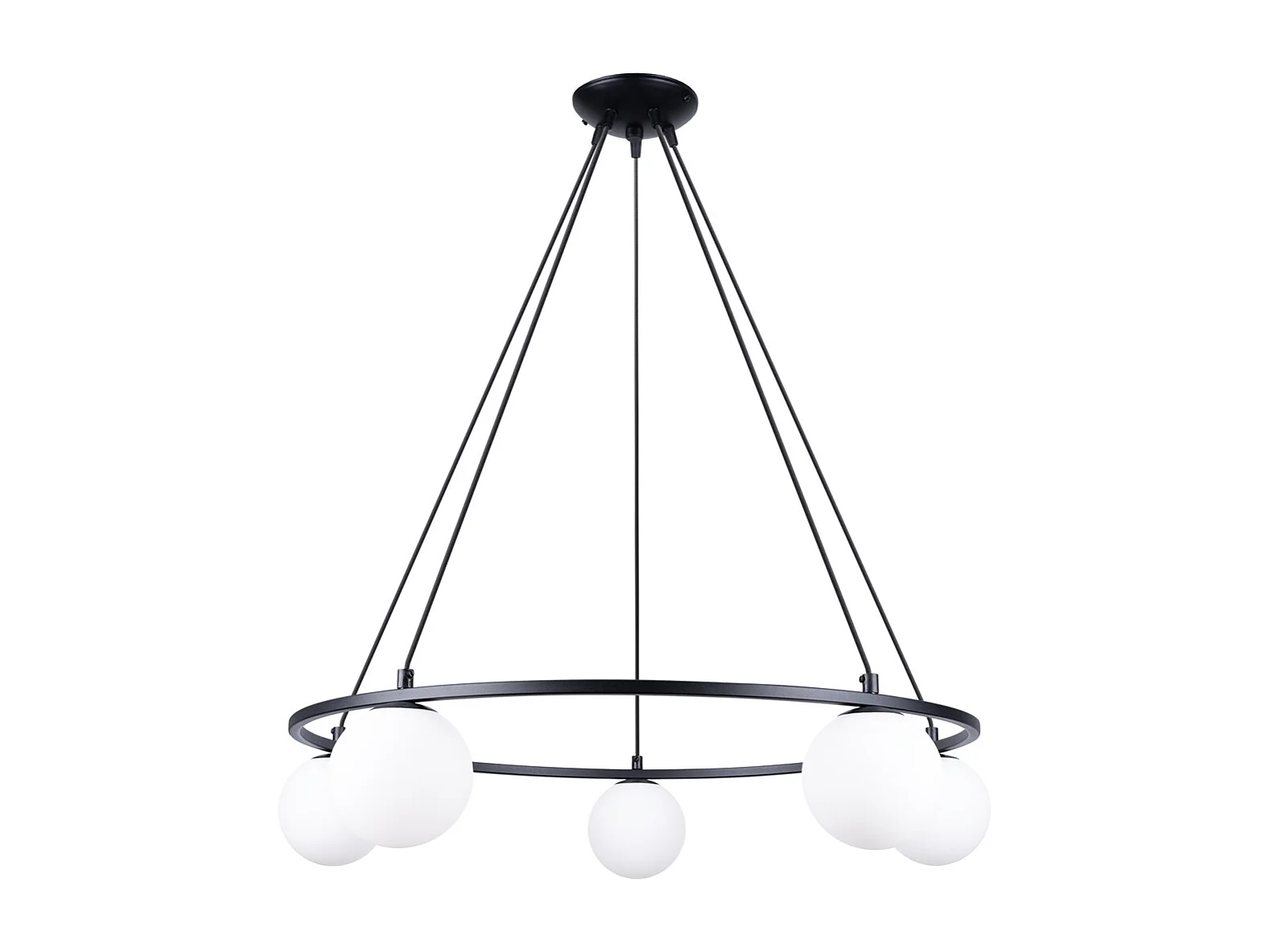 Lustres Lingoro moderno, aço - 5 fontes de luz 4000K - L.66 x H.46 cm - preto