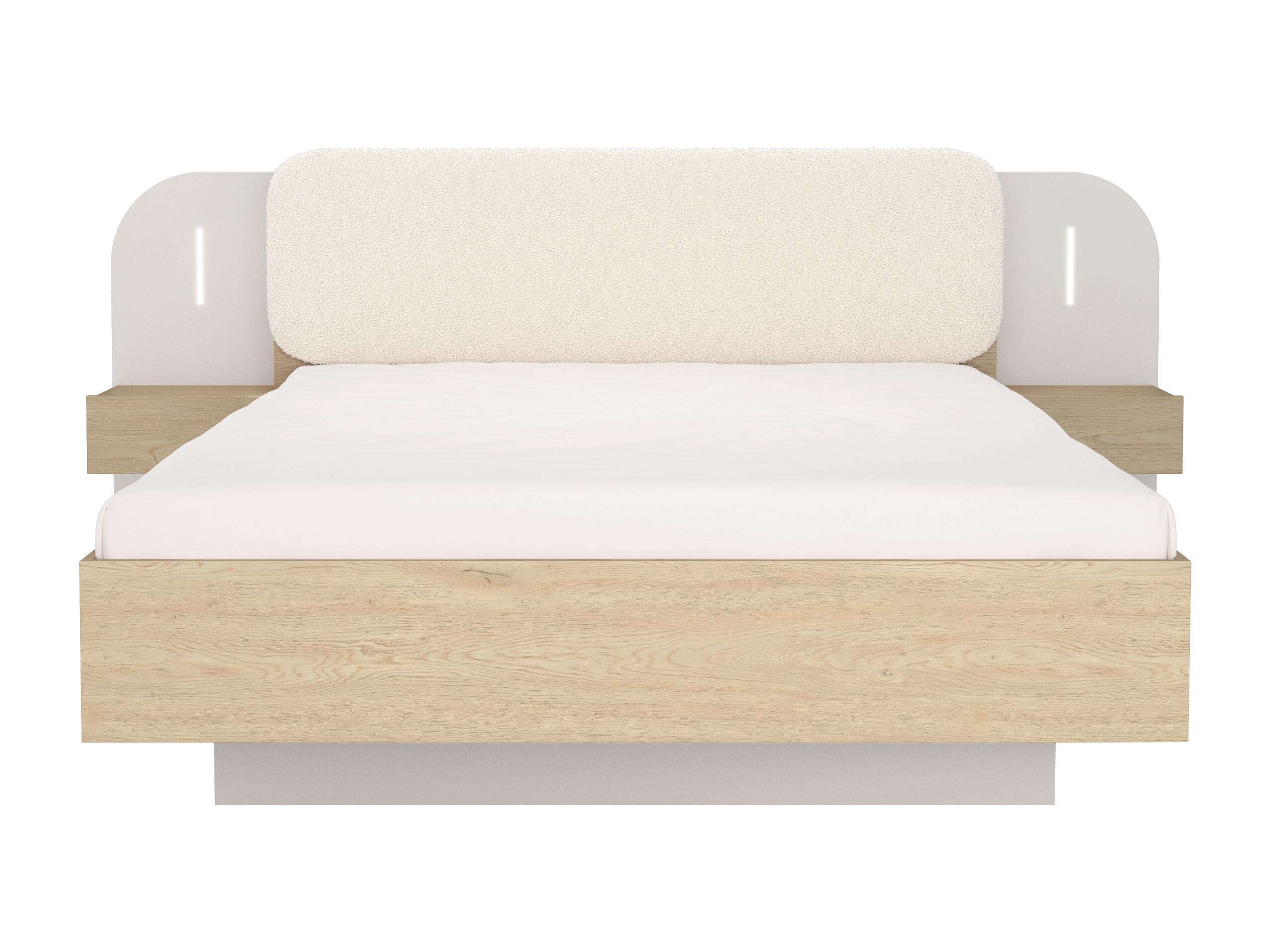 Cama com mesas de cabeceira 160 x 200 cm - Com LEDs - Cor: Bege e natural - LYORIMA