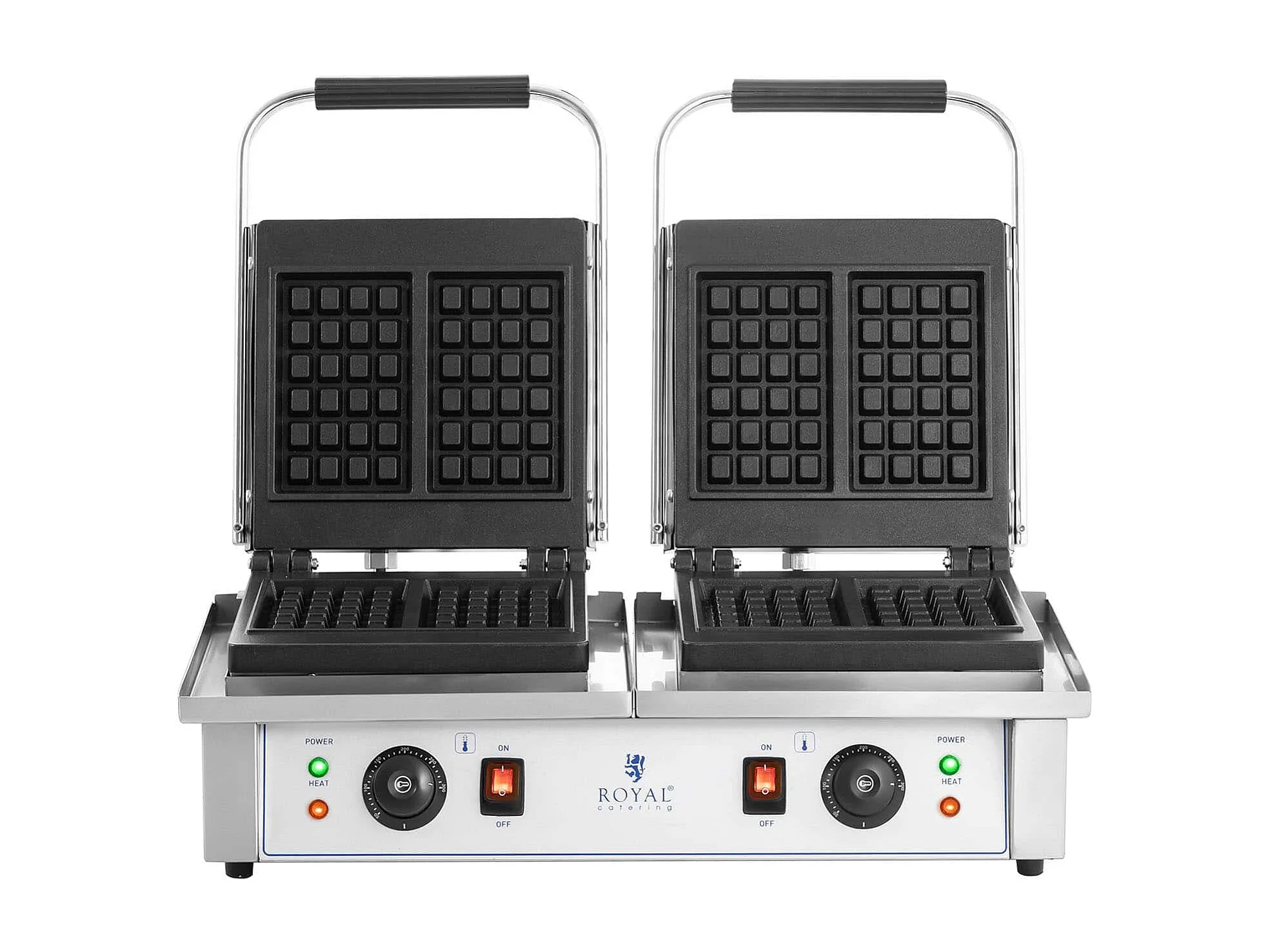 Máquina tradicional belga de waffles retangulares duplos (dimensões da placa: 170 x 100 mm, potência: 2 x 2.000 W, 4 waffles por lote) 14_0004857