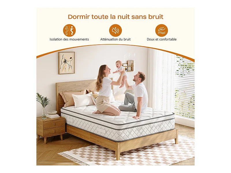 Matelas 120x200cm - Espessura 26cm - com molas ensacadas - Multicamadas Extra Conforto 7 Zonas - Hipoaergênico
