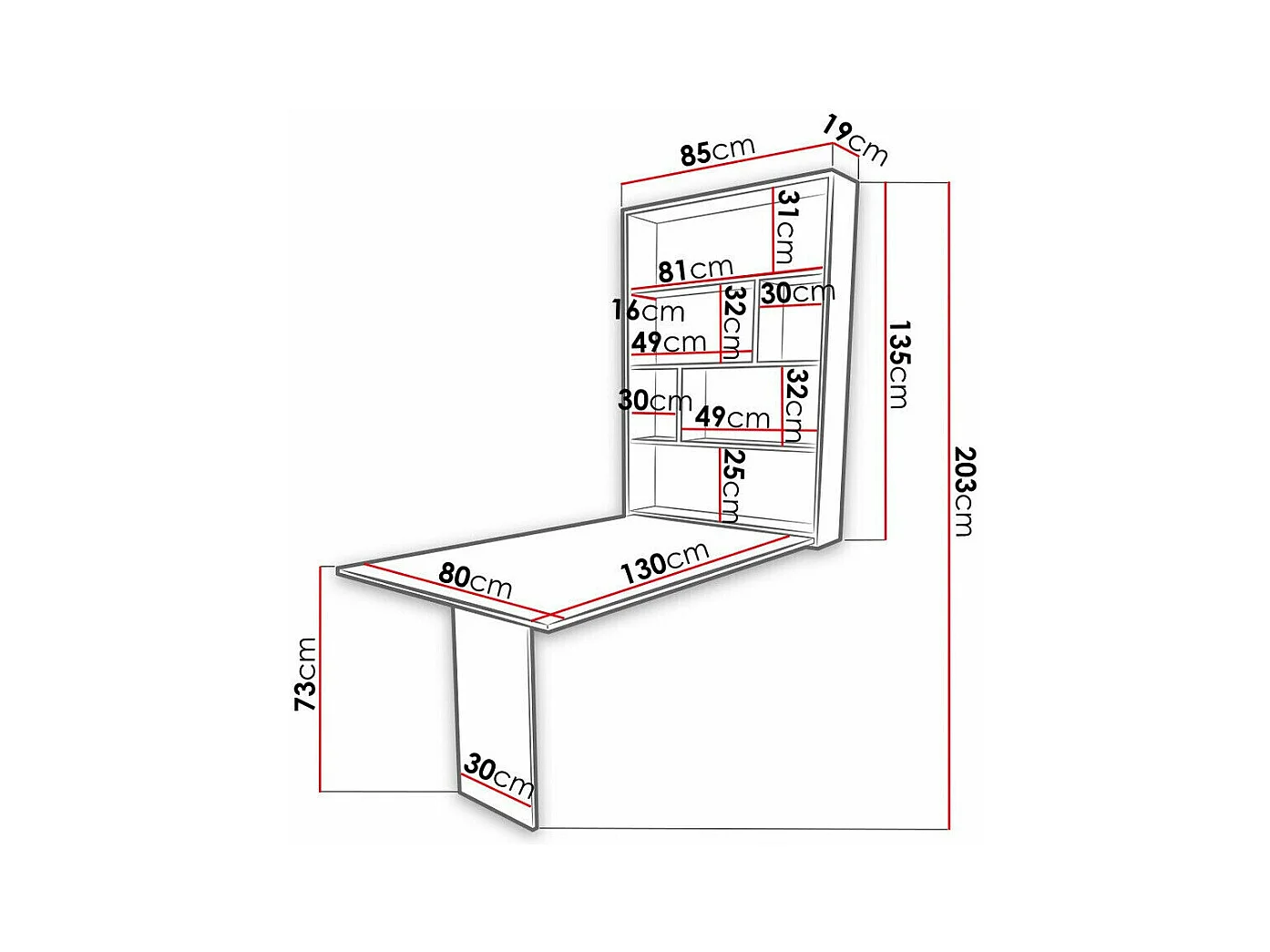 Mesa abatible Hartford 428, Placa de aglomerado laminado, 73x85x130cm