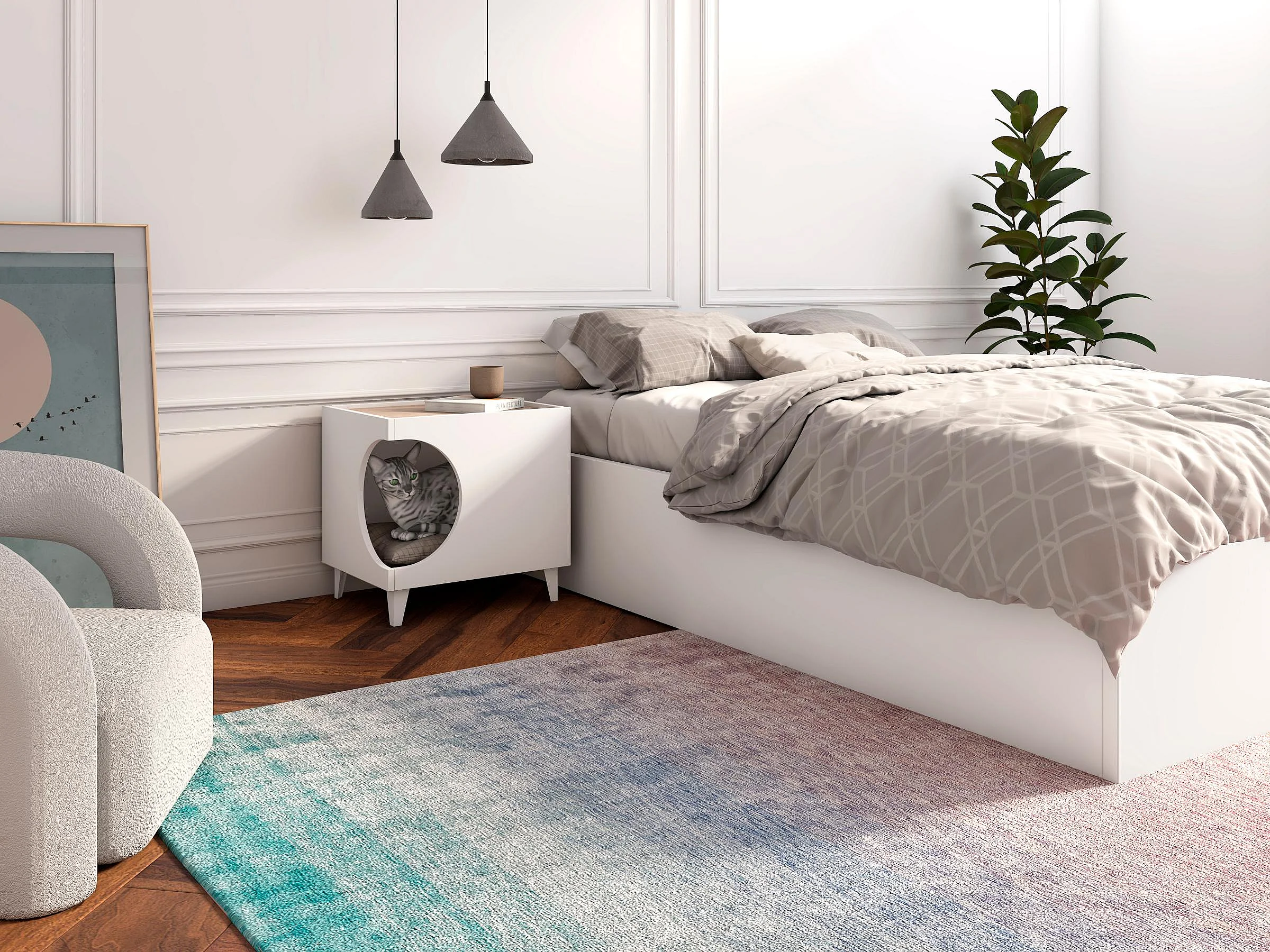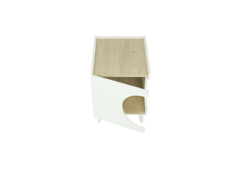 Mesa Animal Ellie, cor Branco e Carvalho, orifício de entrada lateral, 1 porta, 46x37x49cm