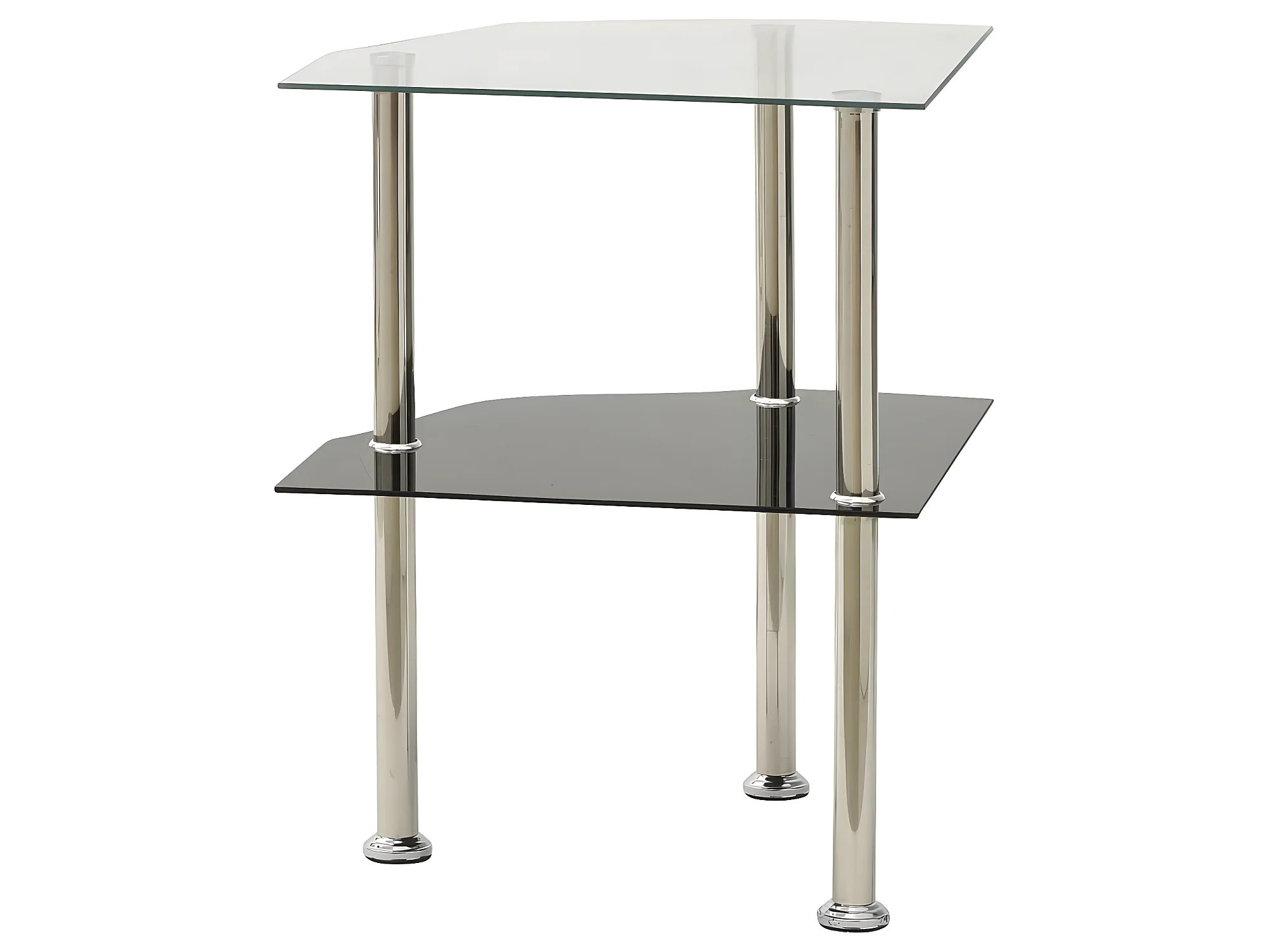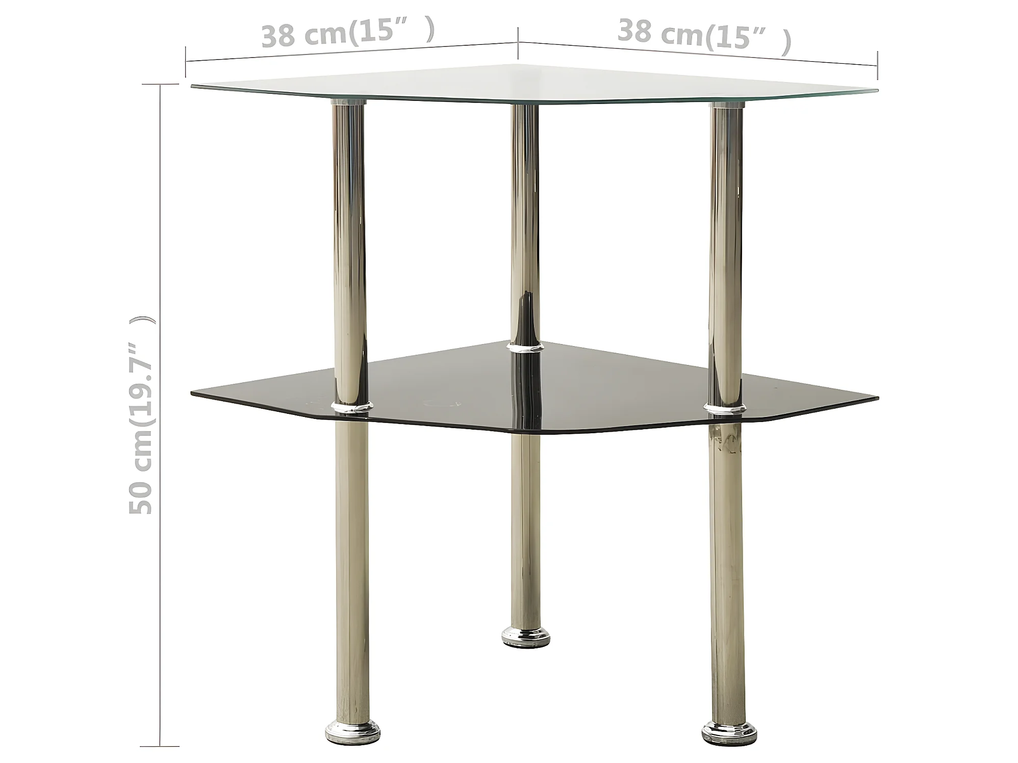 Mesa auxiliar 2 niveles vidrio transparente y negro 38x38x50 cm