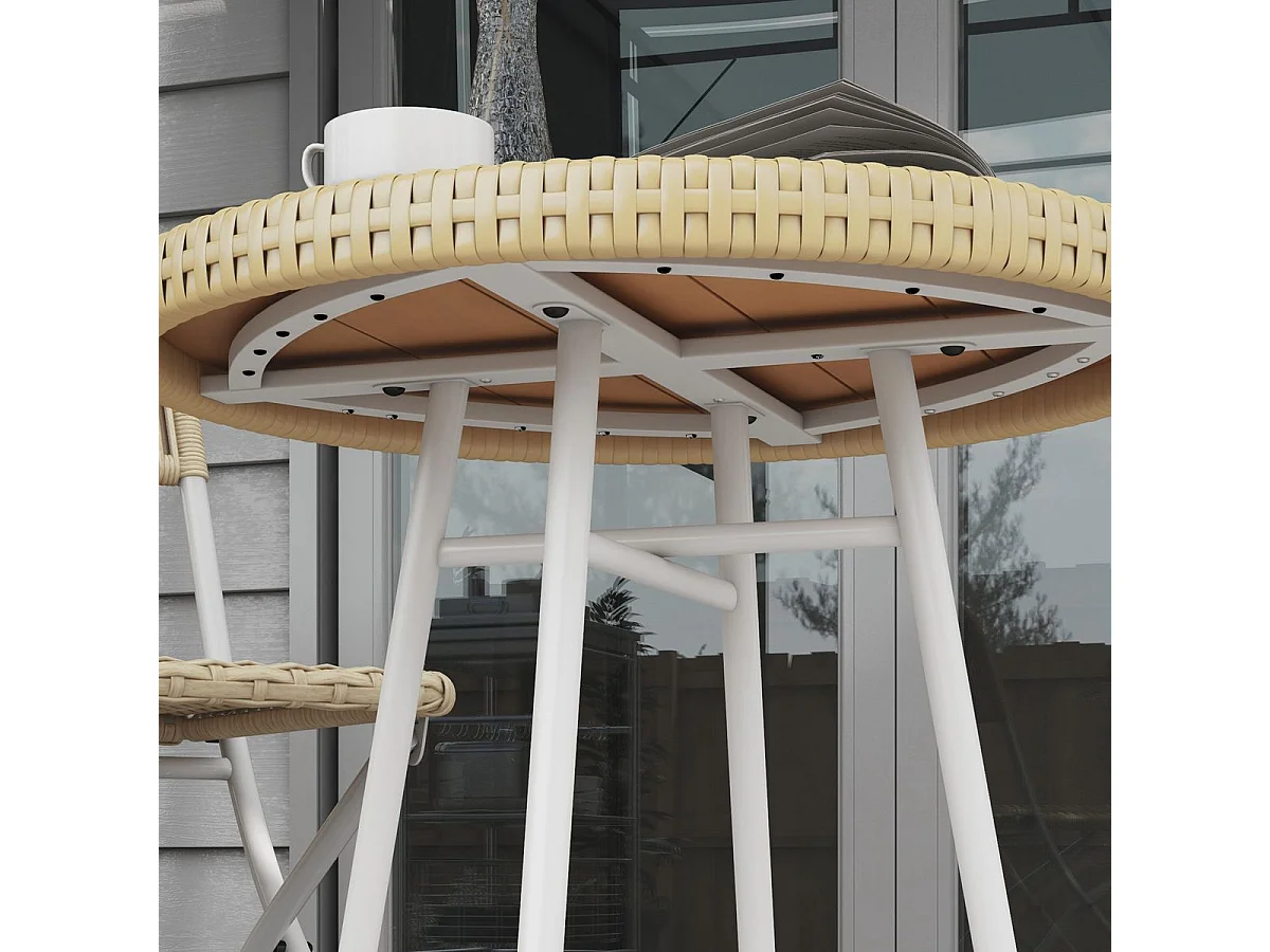 Mesas de apoio p/ jardim c/ tampo de madeira 2peças vime PE bege