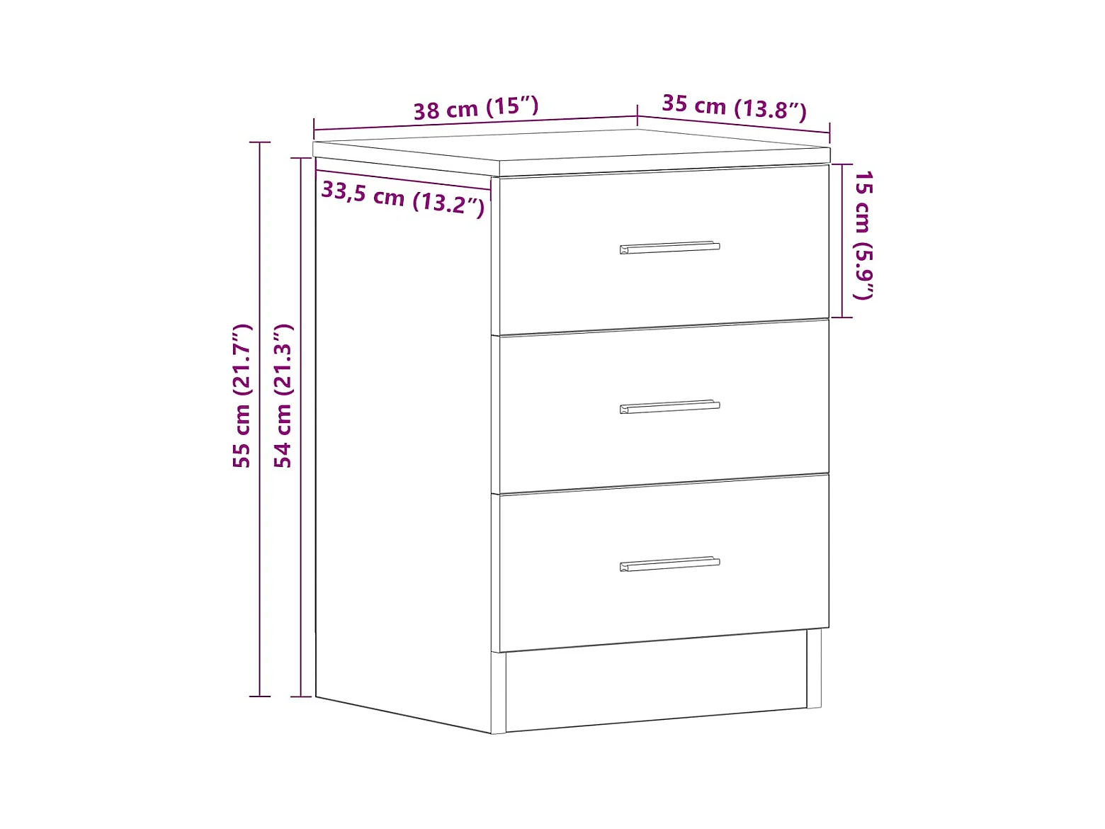 Mesa cabeceira 2pcs 38x35x56cm derivado madeira cinzento sonoma