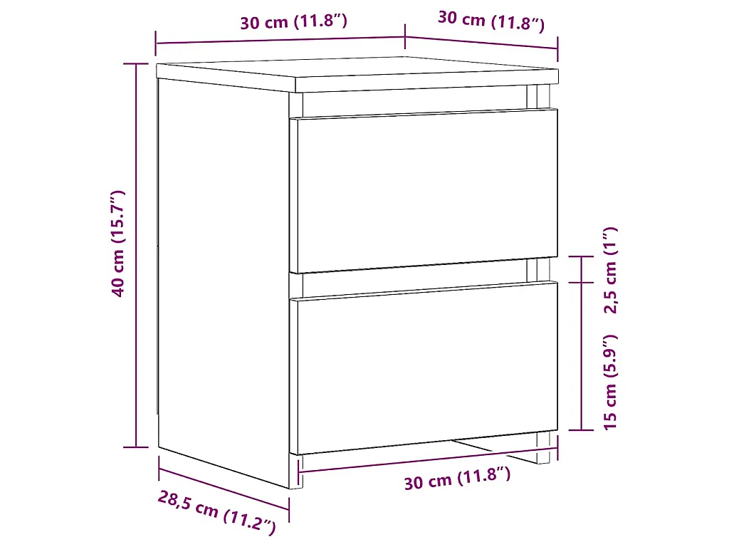 Mesa cabeceira 30x30x40 cm derivados madeira carvalho artisiano