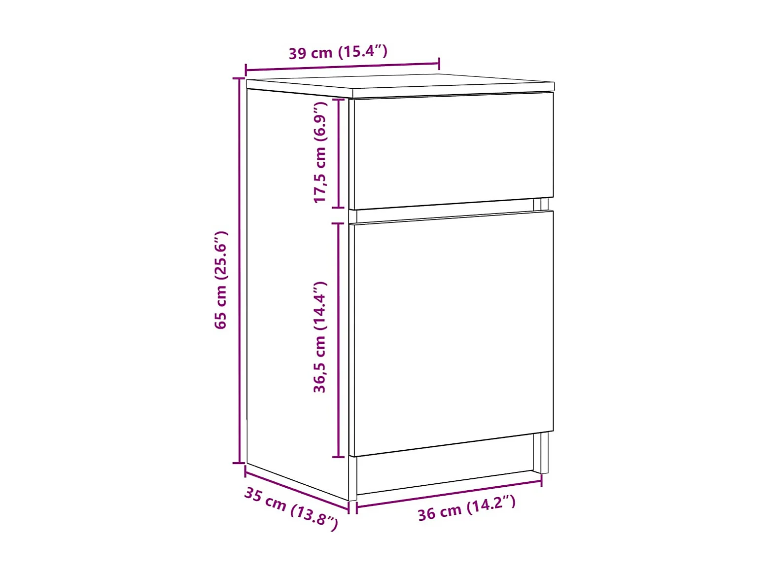 Mesas de cabeceira 3 gavetas 2pcs 39x35x65cm carvalho artisiano