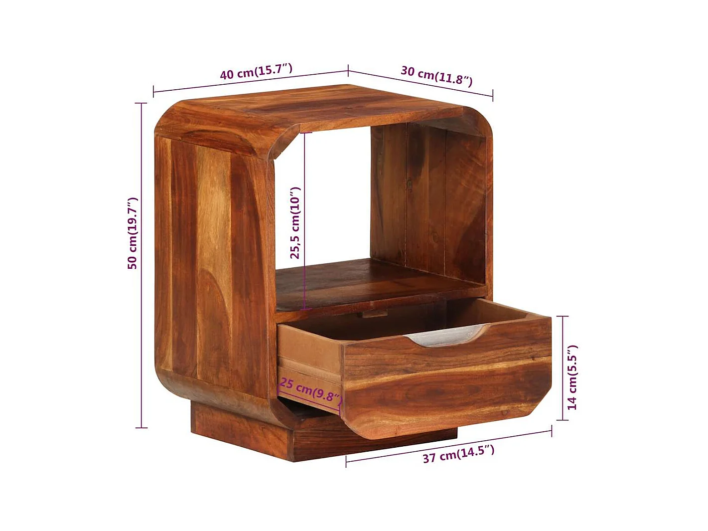 Mesa cabeceira c/ gaveta madeira acácia maciça 40x30x50 cm
