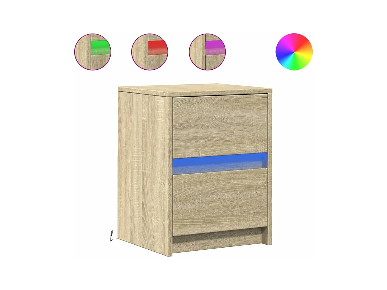 Mesa cabeceira com luzes LED derivados madeira carvalho sonoma