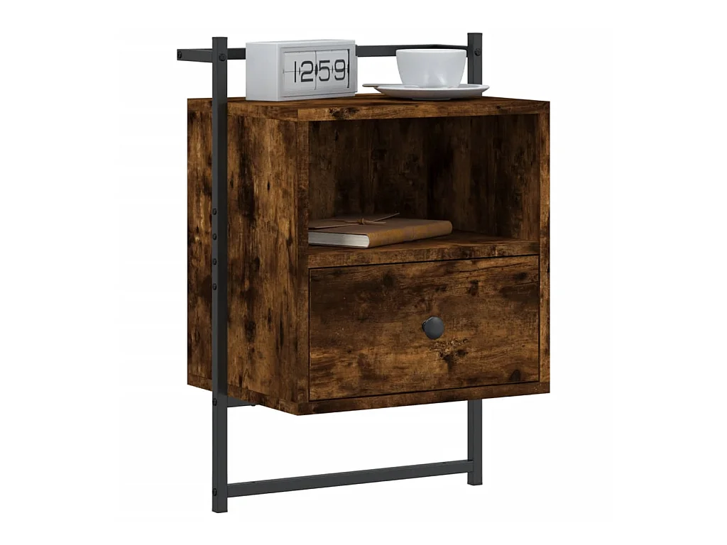 Mesa de cabeceira de montagem na parede cor carvalho fumado PT71506